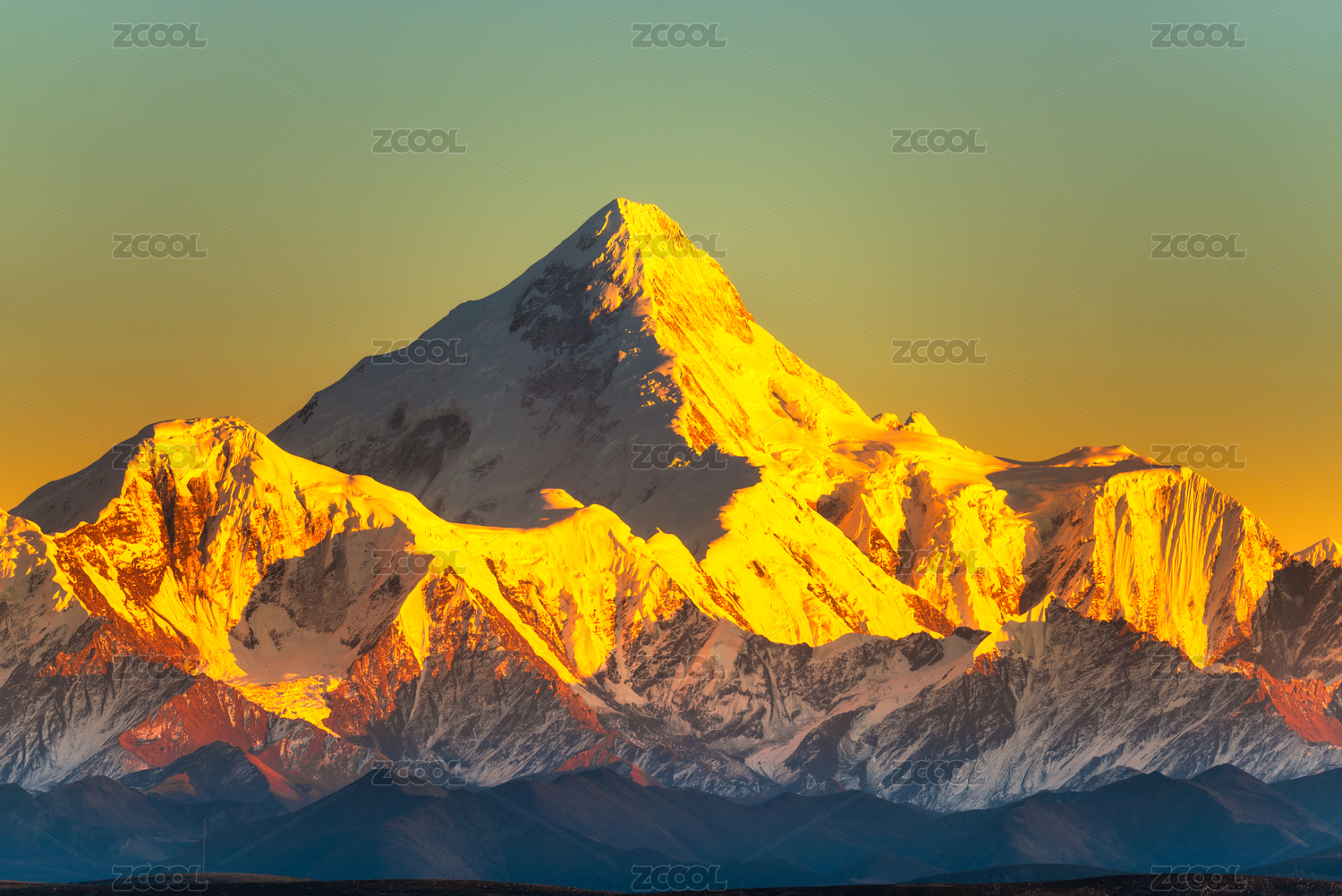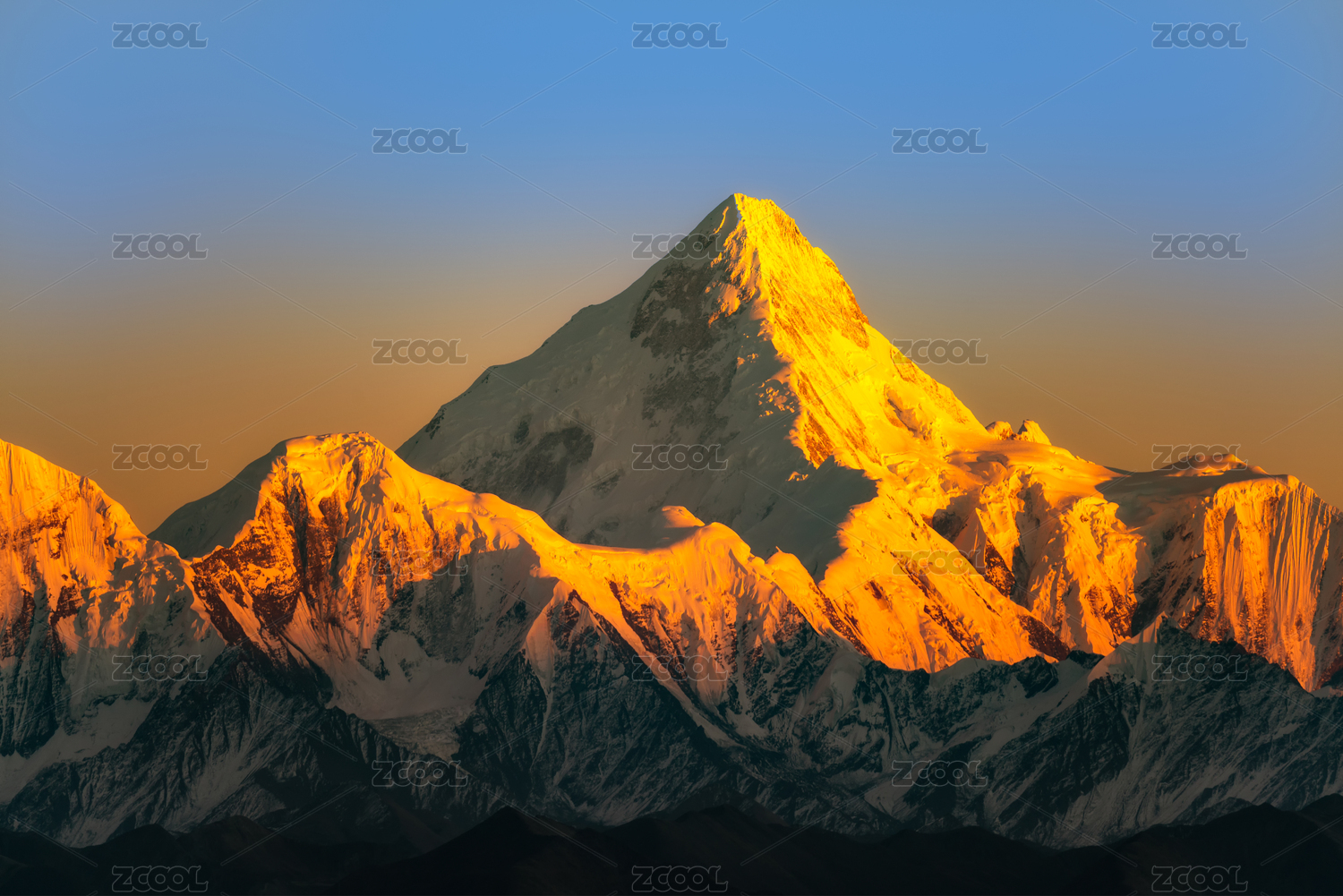 中国四川甘孜藏族自治州贡嘎山日照金山自然风光