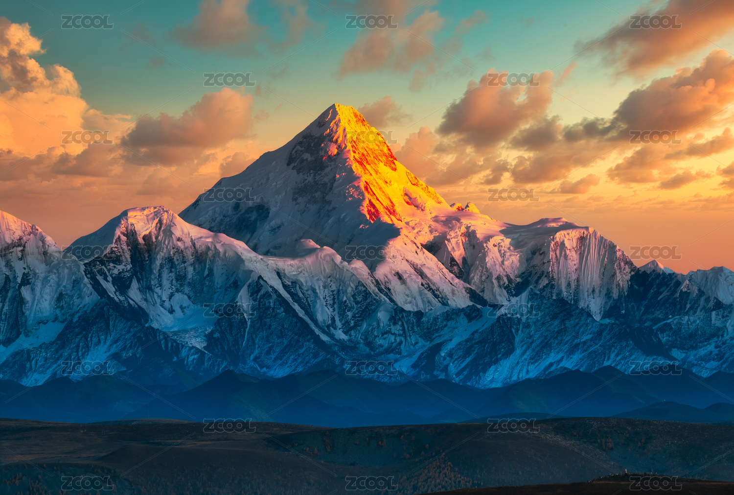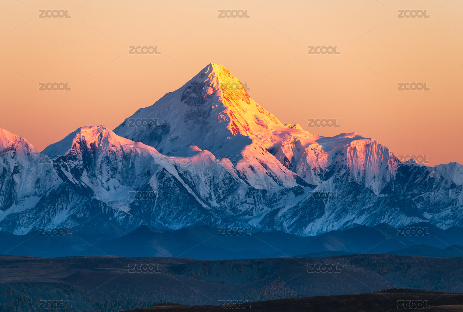 中国四川甘孜贡嘎雪山落日日照金山