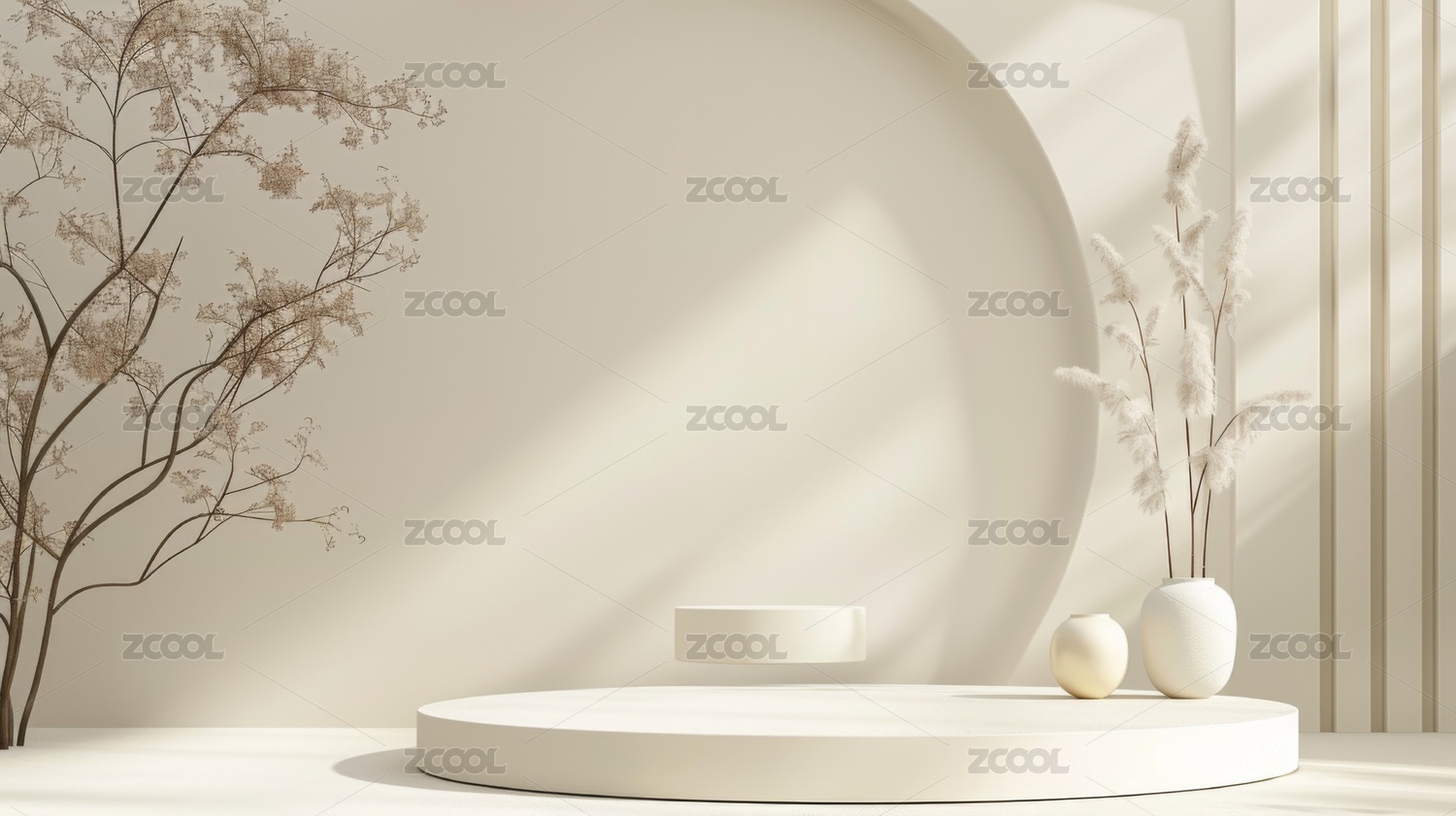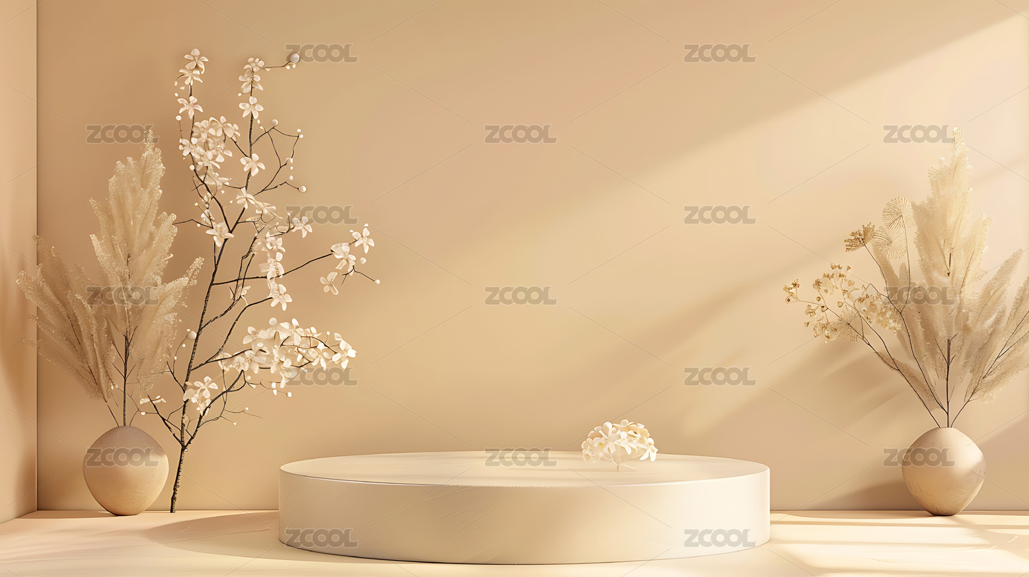 米色中式风格电商化妆品产品展示台