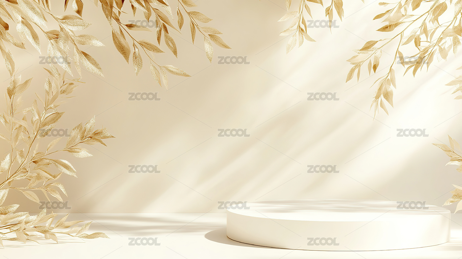 金色背景下的白色圆台