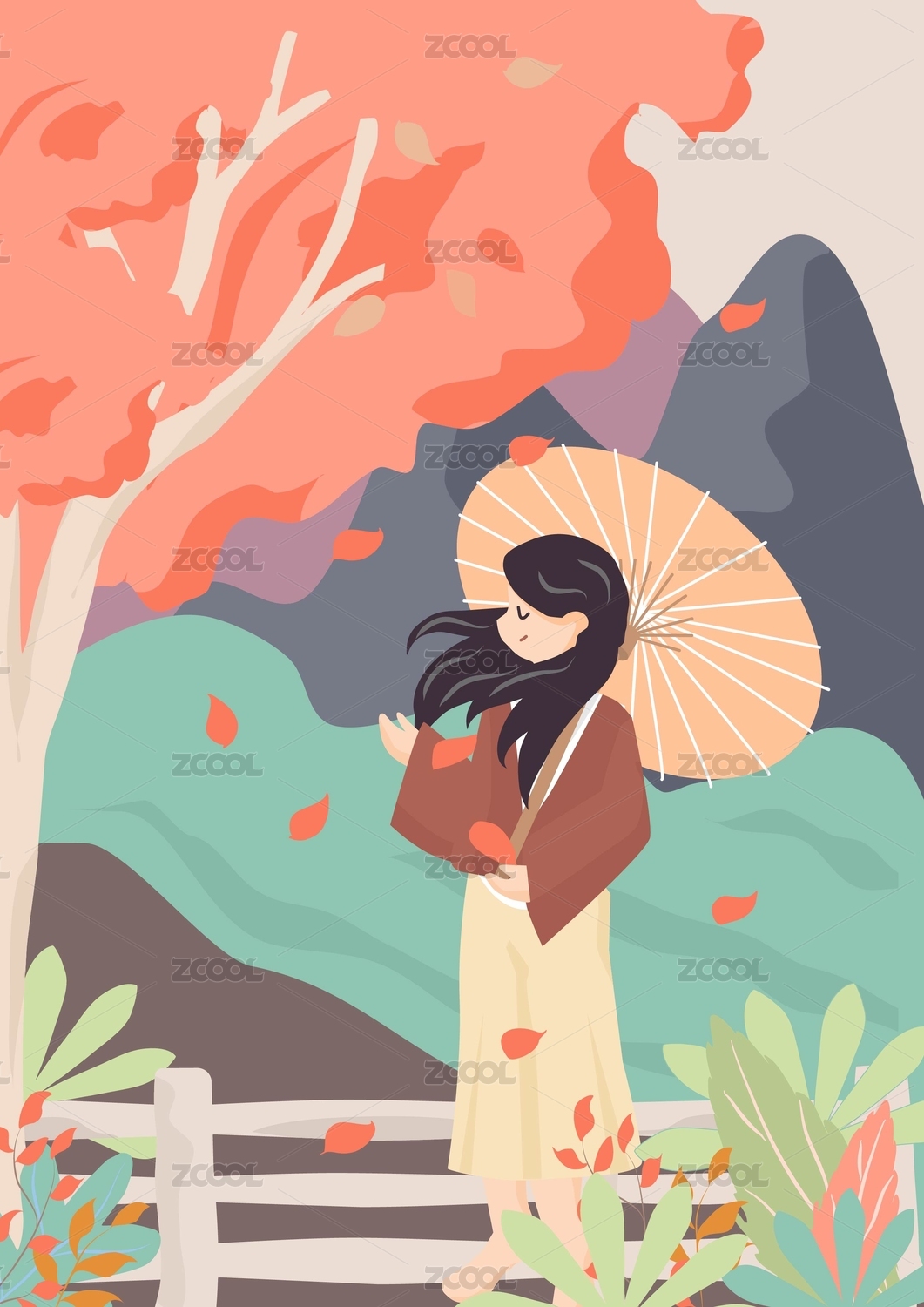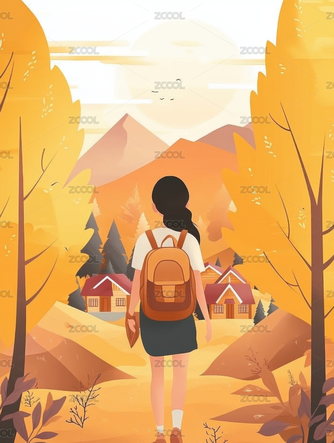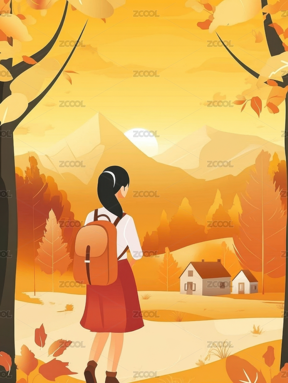 矢量,卡通,渐变,扁平,插画,插图,背景,元素,踏秋,秋季