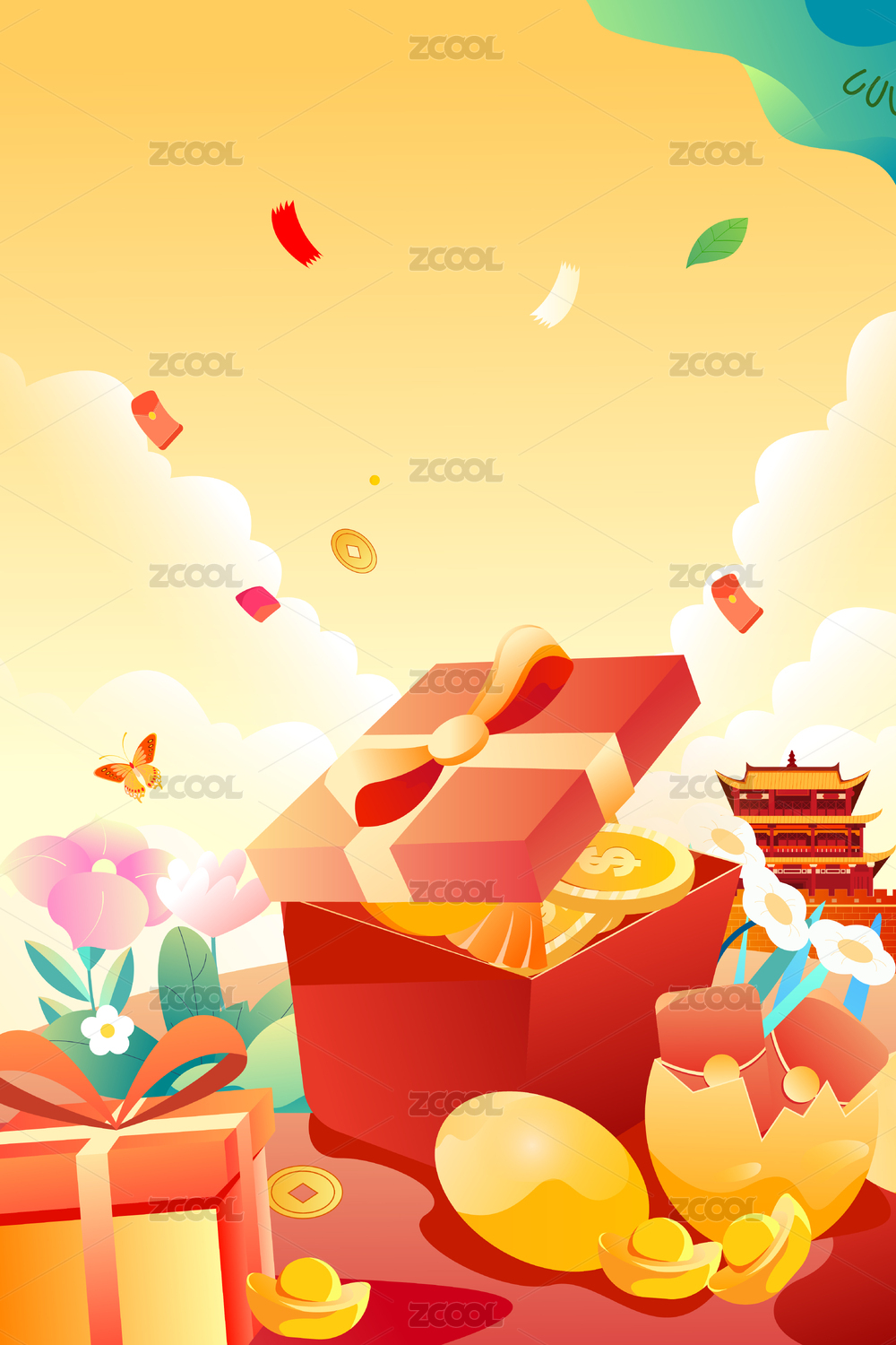 购物促销礼盒年货节购物狂欢节电商节日插画