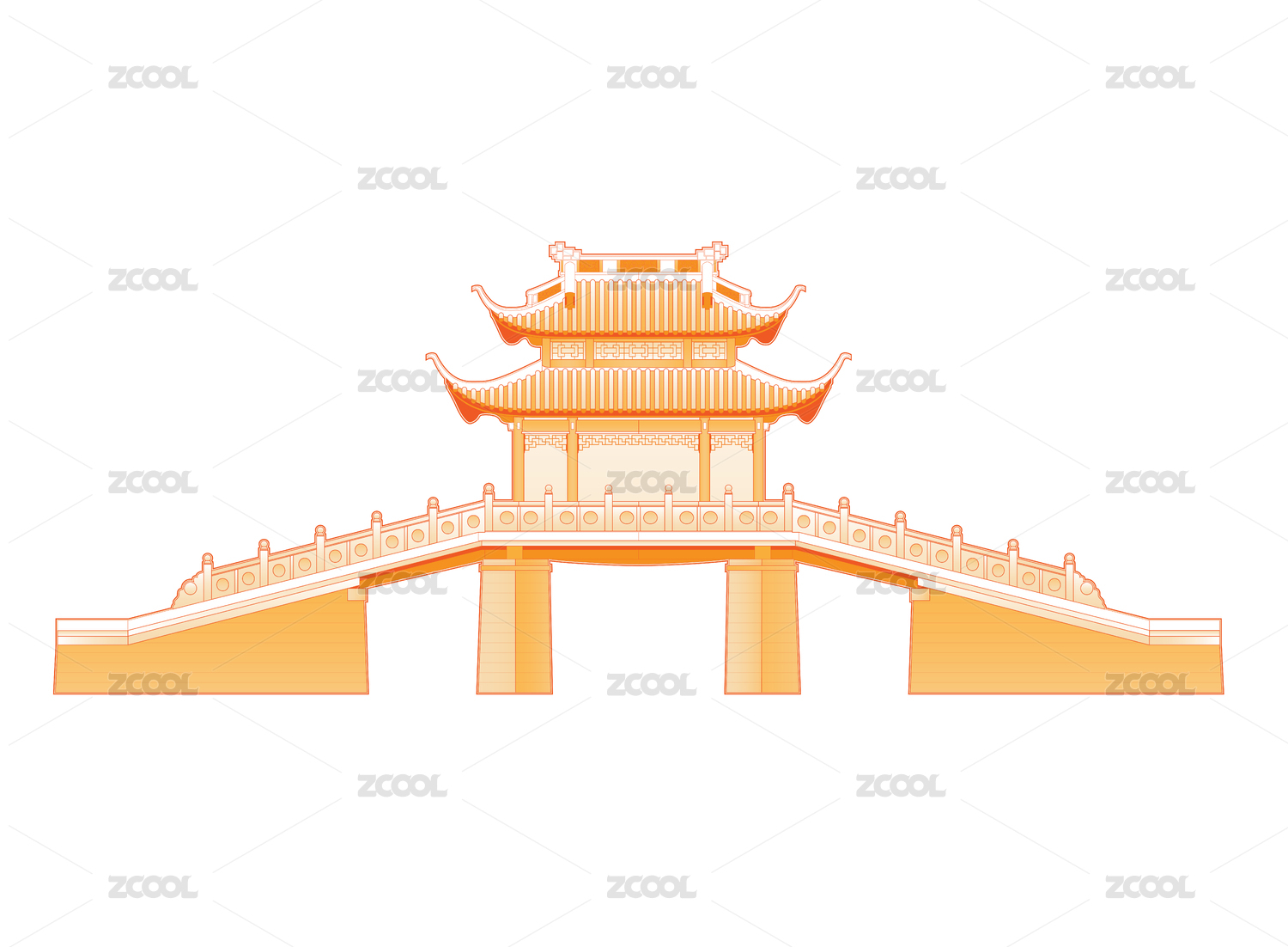 浙江杭州西湖玉带晴虹桥矢量插画设计素材
