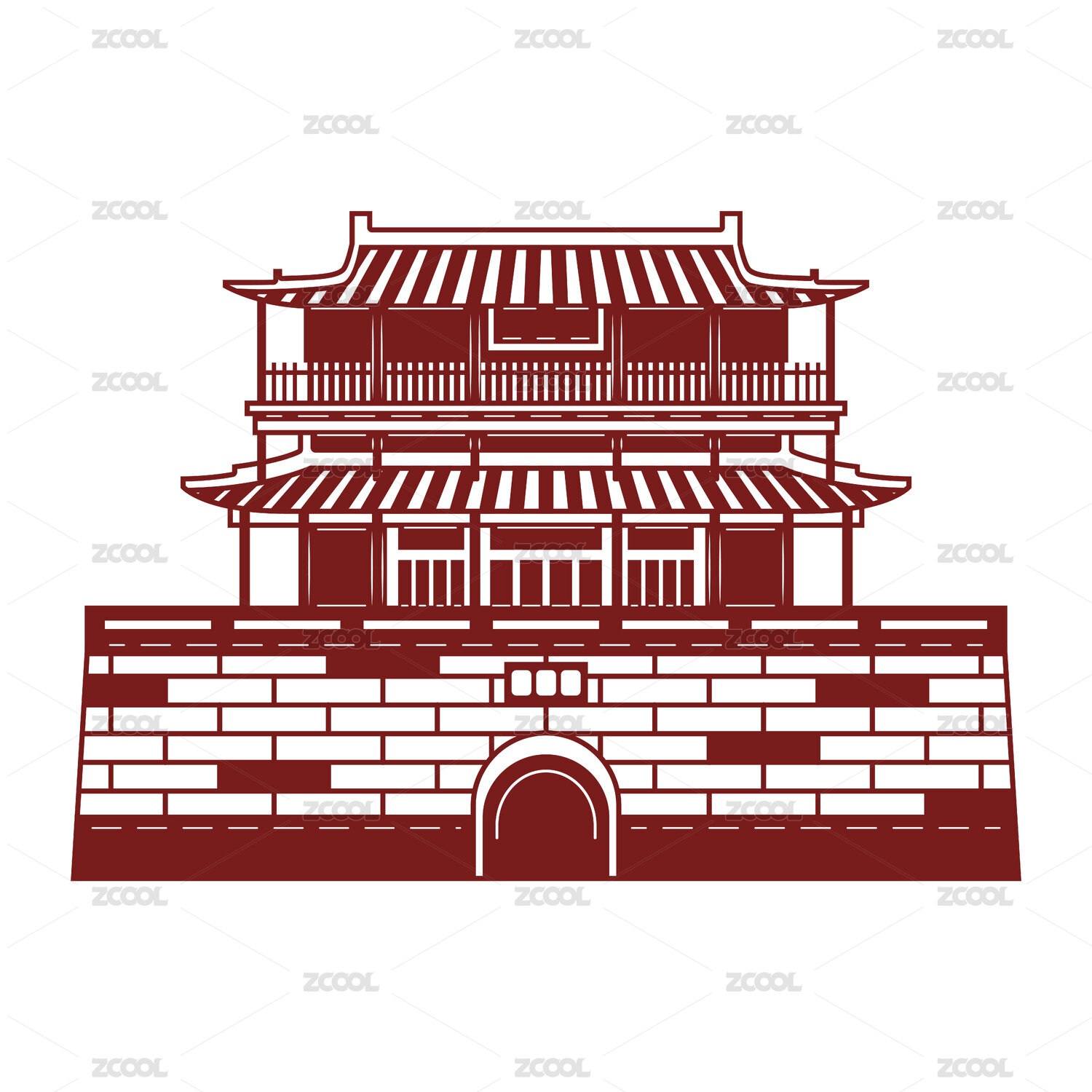 插画,建筑,城门,复古,旅游,景观,国风,古代,线条
