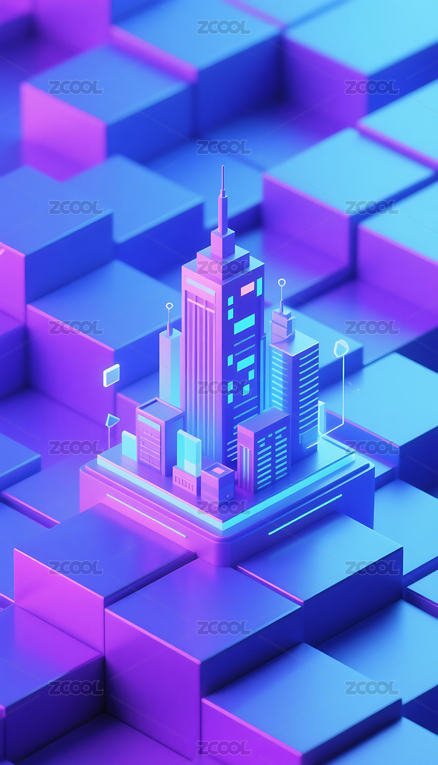 潮流金融科技感2.5D插画海报