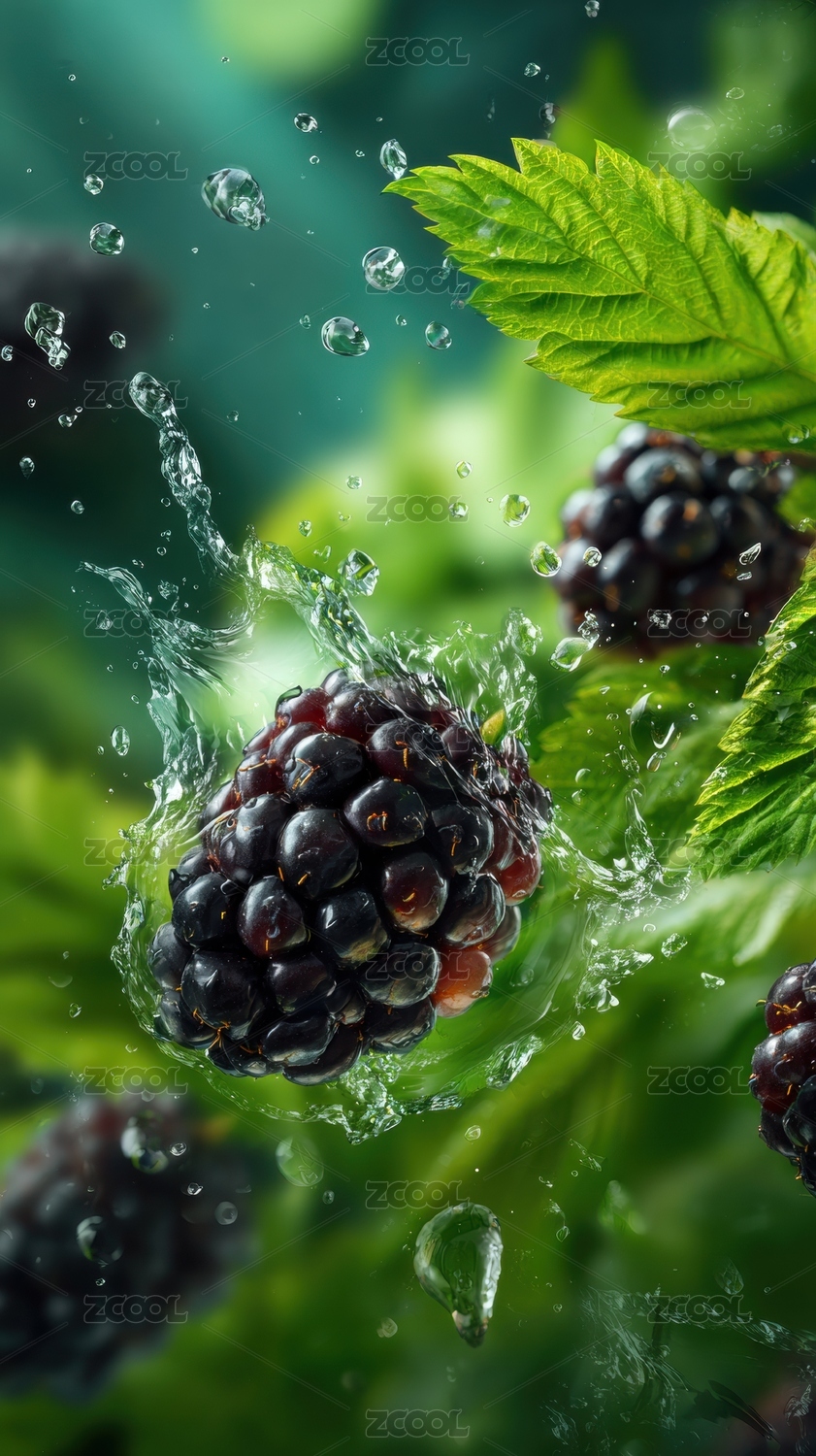 新鲜浆果特写黑莓、覆盆子与蓝莓