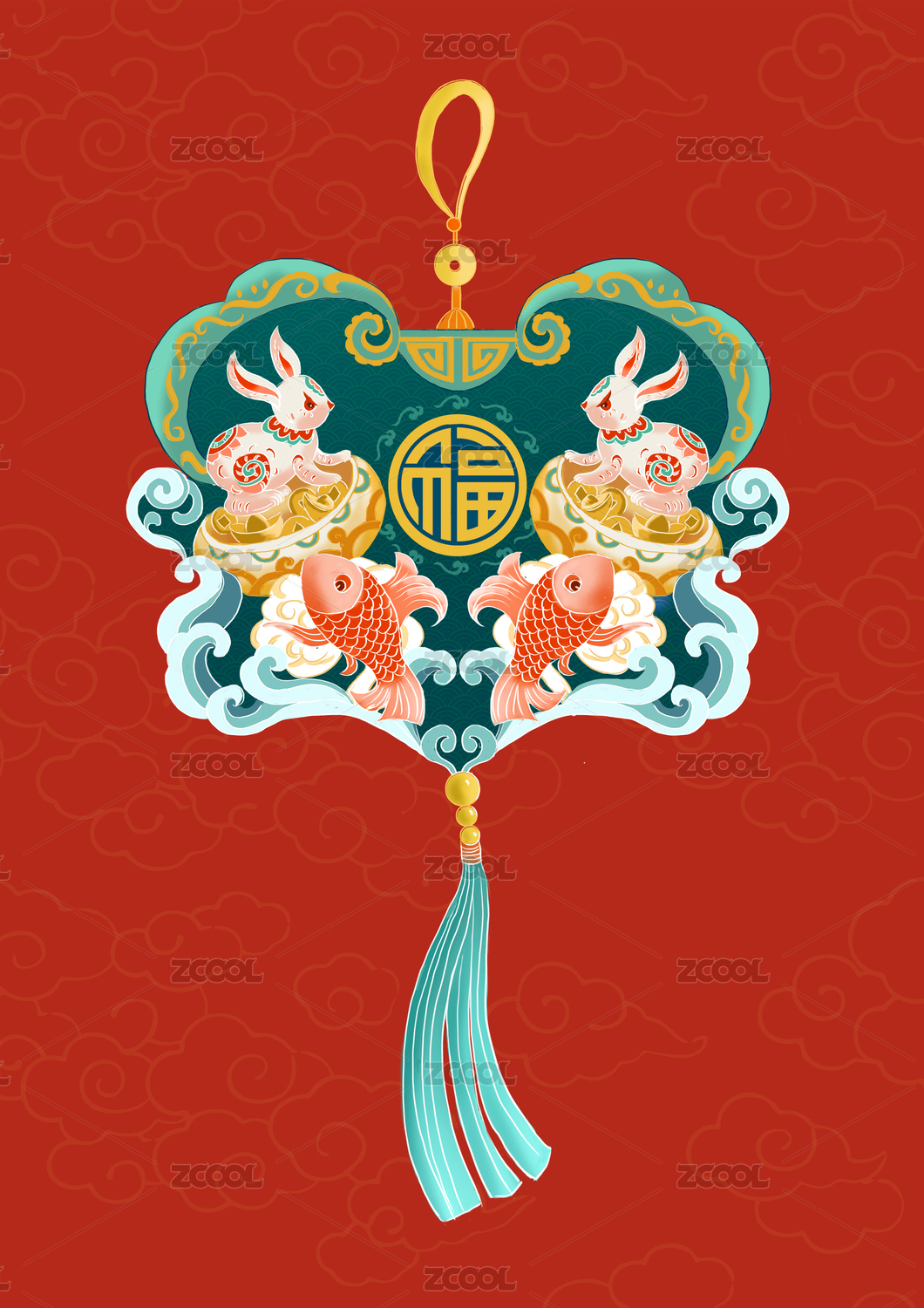 新年虎年迎福纳宝中国结年年有余祥云黄红