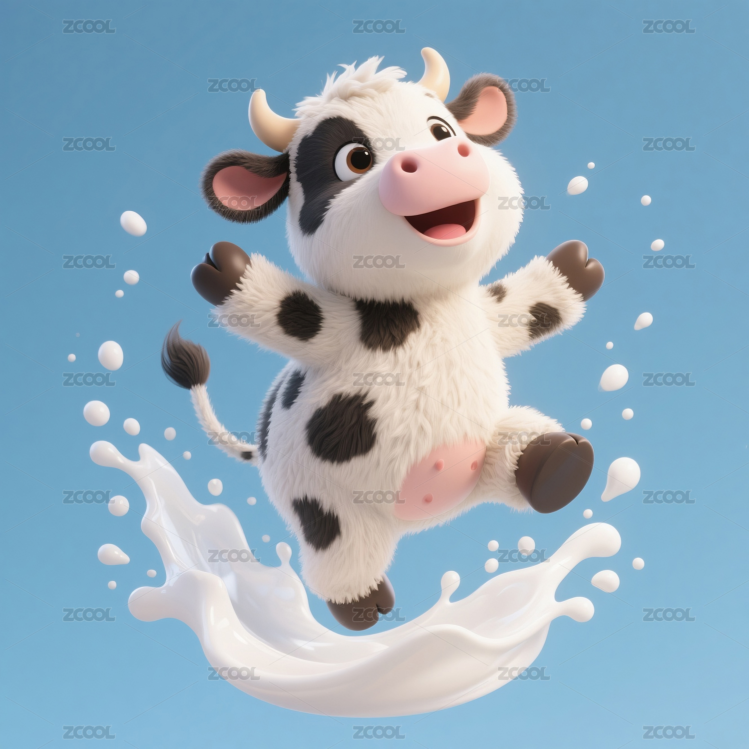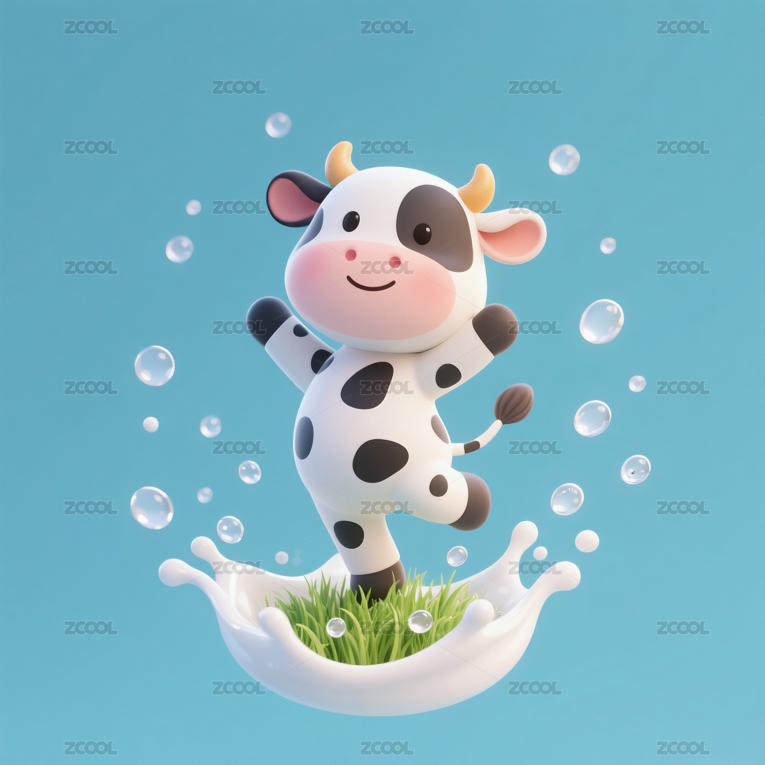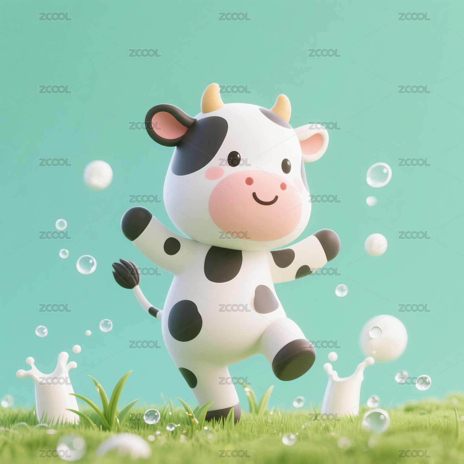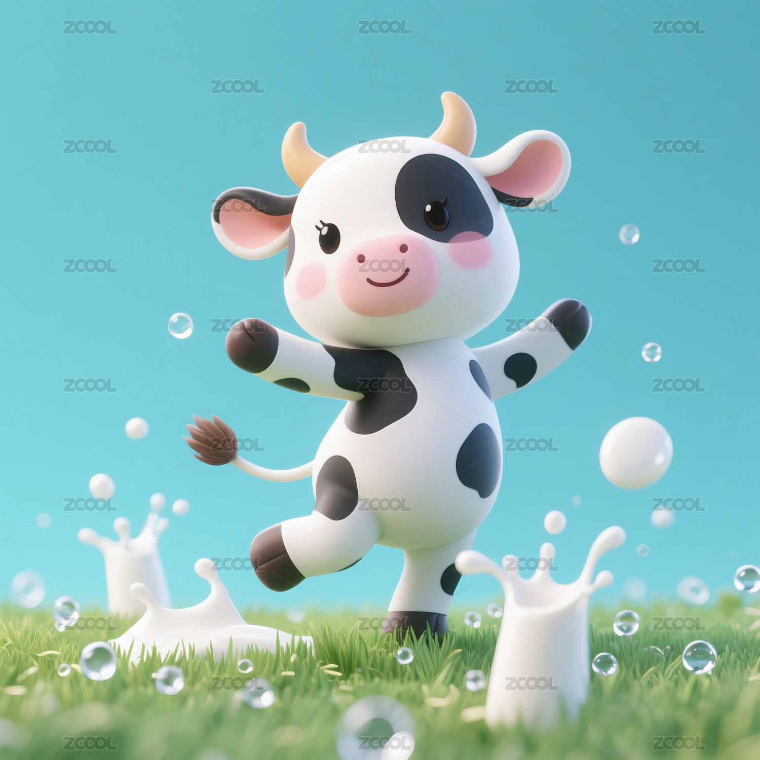 在牛奶里跳舞的奶牛宝宝动漫卡通形象