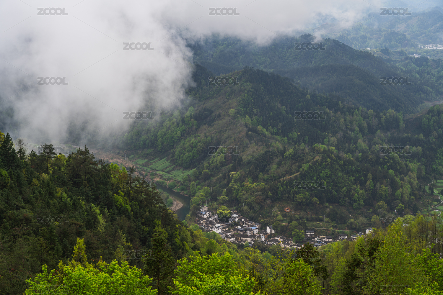 石潭村景区,下汰观景台,云海,歙县,黄山市,安徽,徽派建筑,大山,村庄,徽州古村落
