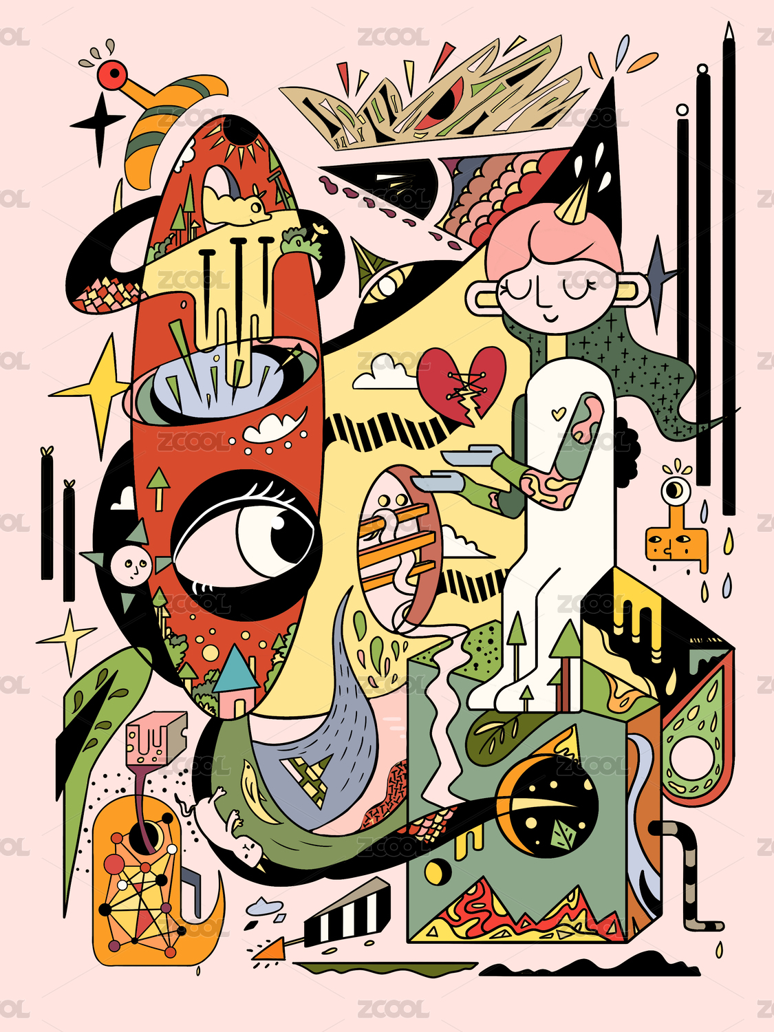 抽象,超现实主义,人物,漫画,涂鸦,头,大眼睛
