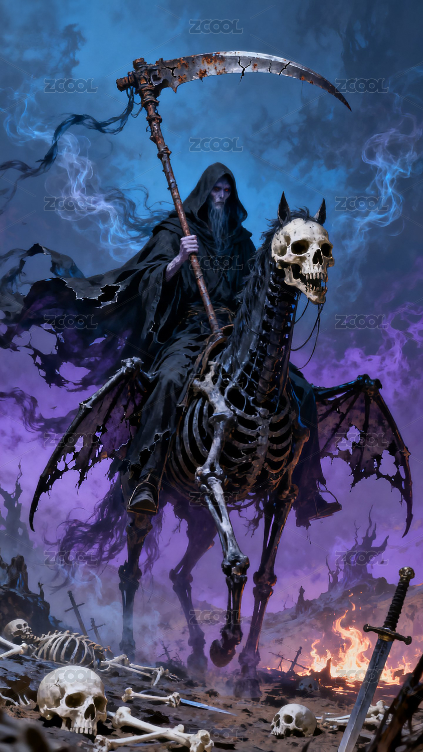 国画,水墨画,创意,鹿角,权杖,法杖,山神,铠甲