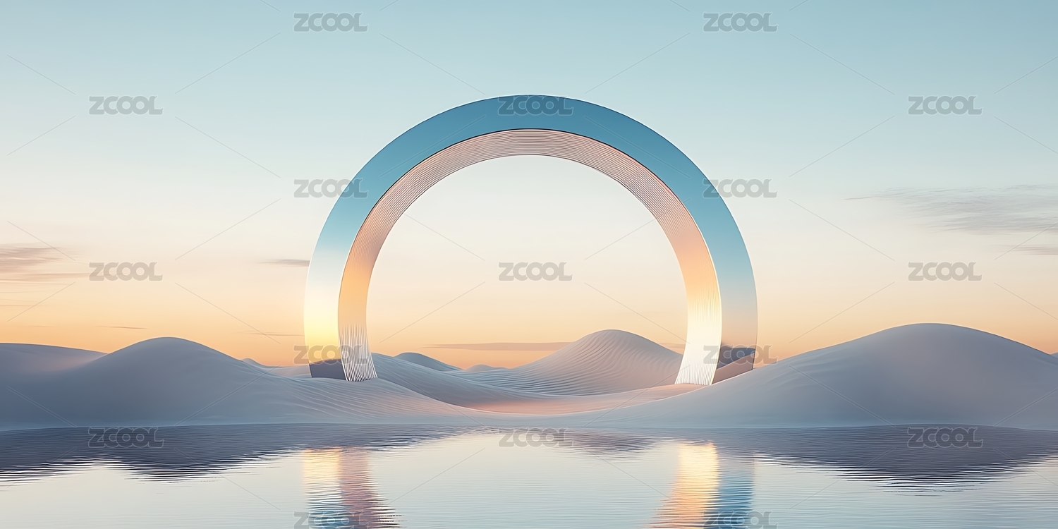 梦幻山水中的透明拱门