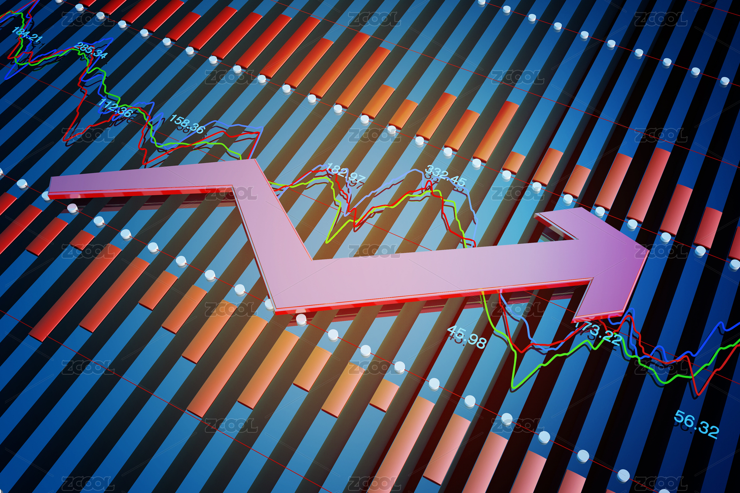 三维插图,金融股市经济统计图表,经济图表,成功箭头