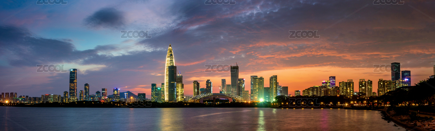中国广东省深圳市高楼大厦CBD建筑夜景