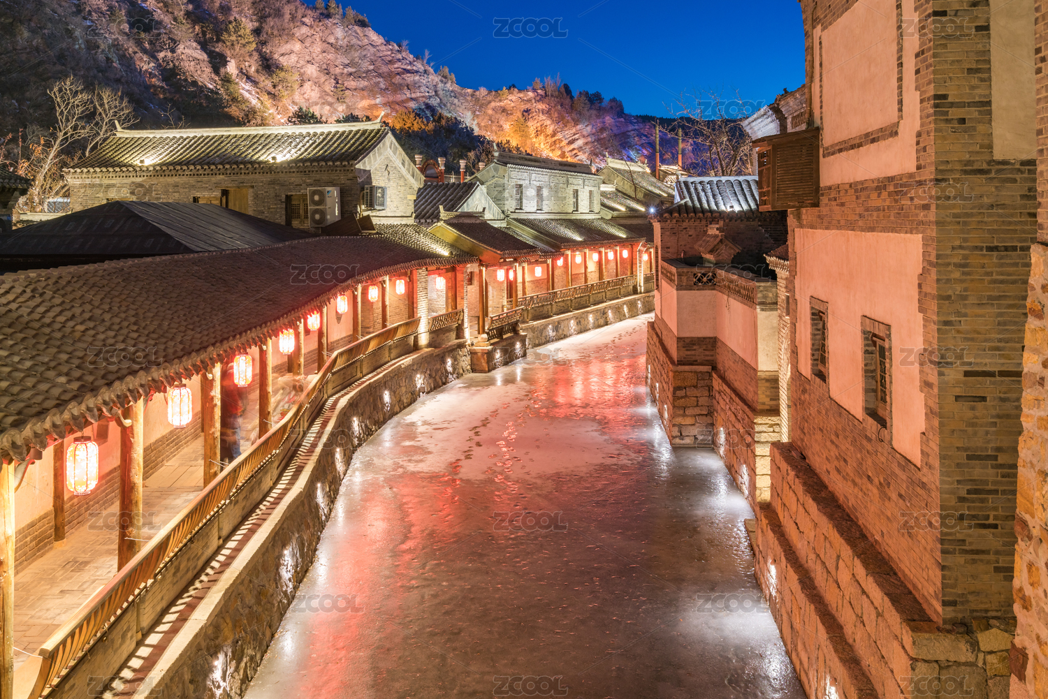 古北水镇,夜景,夜晚,仿古建筑,民居,著名,灯光,照明,照亮,冬天