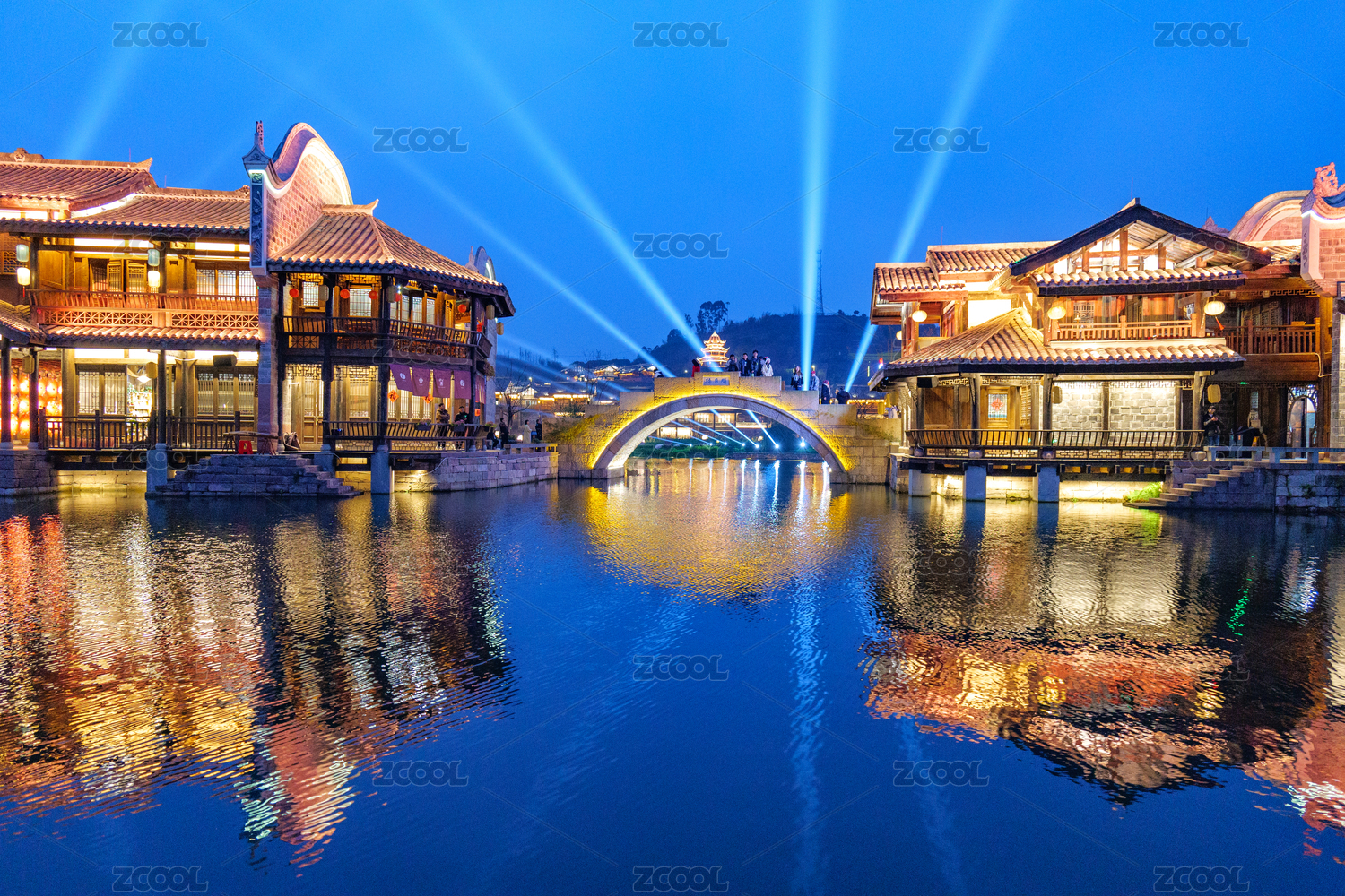 水乡小镇夜景