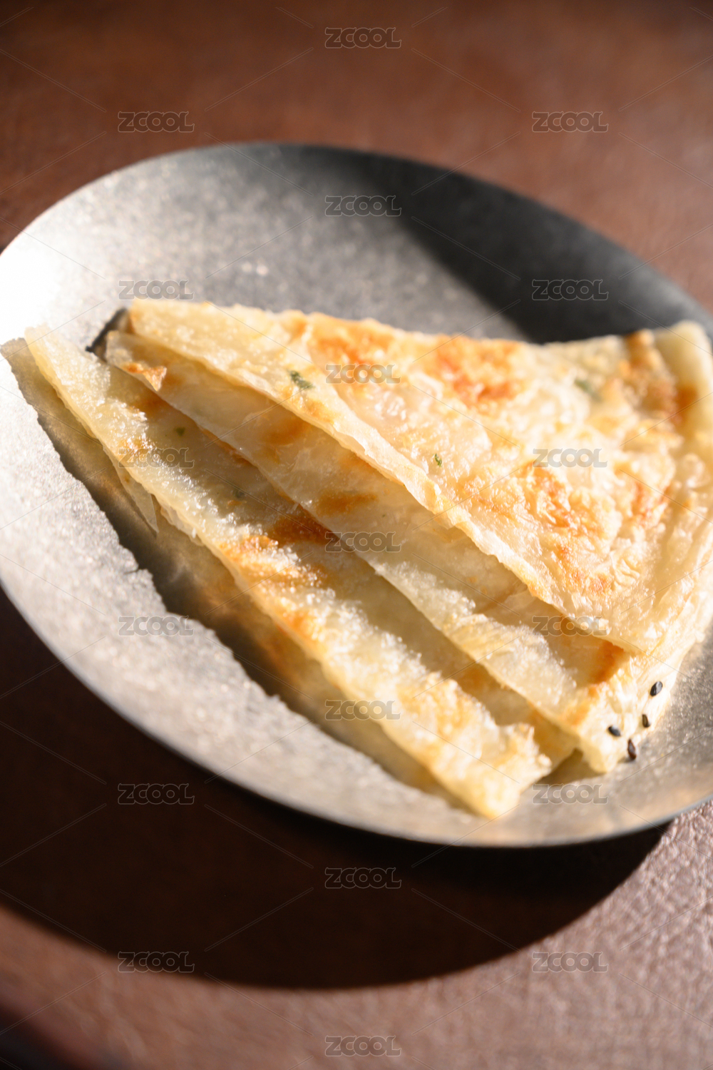 青花瓷碟子里的酱香千层饼