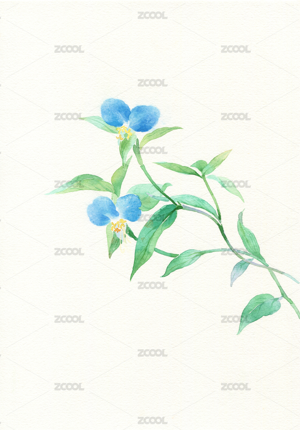 水彩画,花卉,植物,小飞燕,蓝色花卉,装饰画,印花