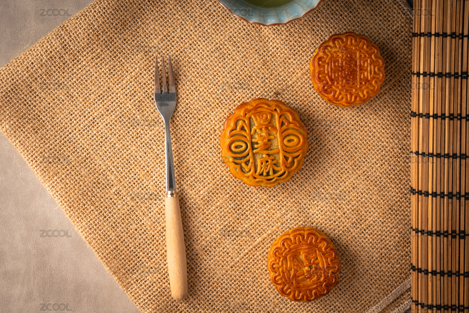 复古场景中的月饼