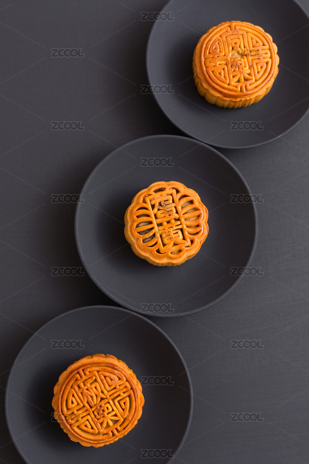 黑色背景排列整齐的中国中秋月饼