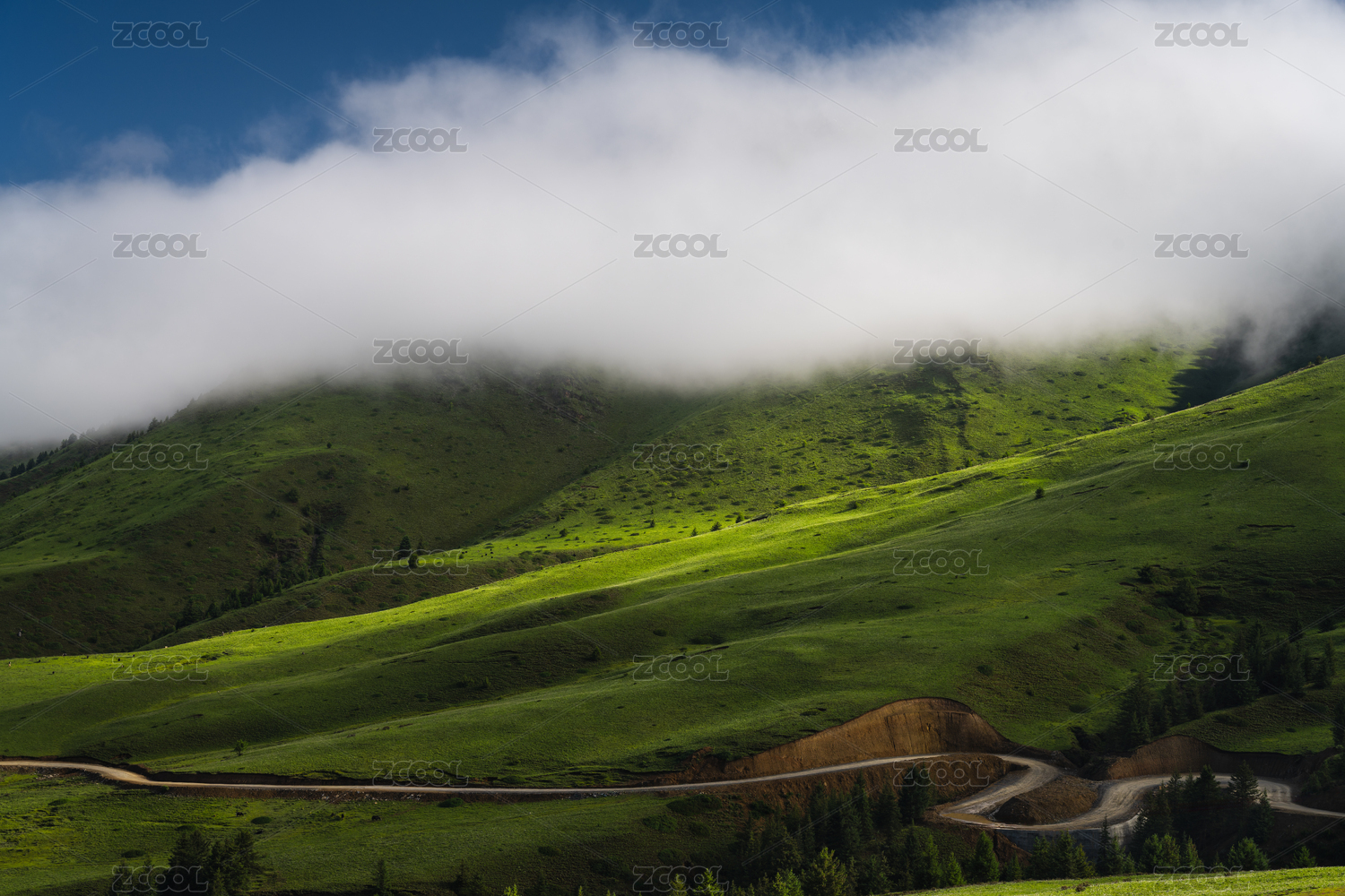 中国新疆维吾尔族自治区伊犁唐布拉草原大自然高山森林风光