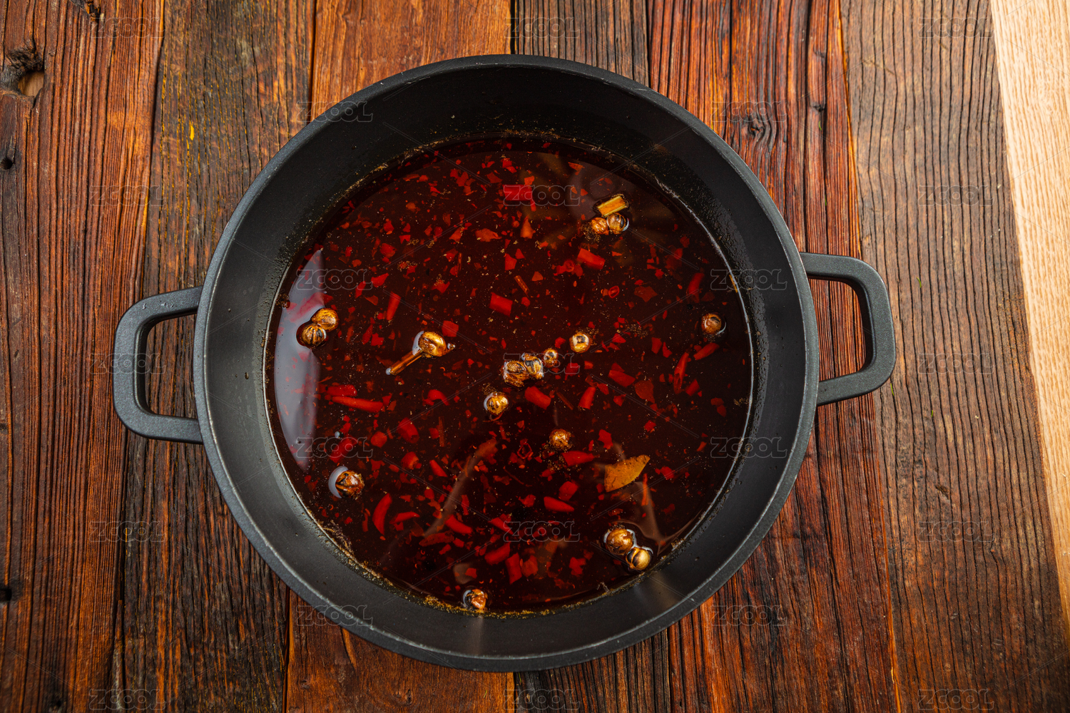 不锈钢锅装的藤椒椒麻汤底小火锅