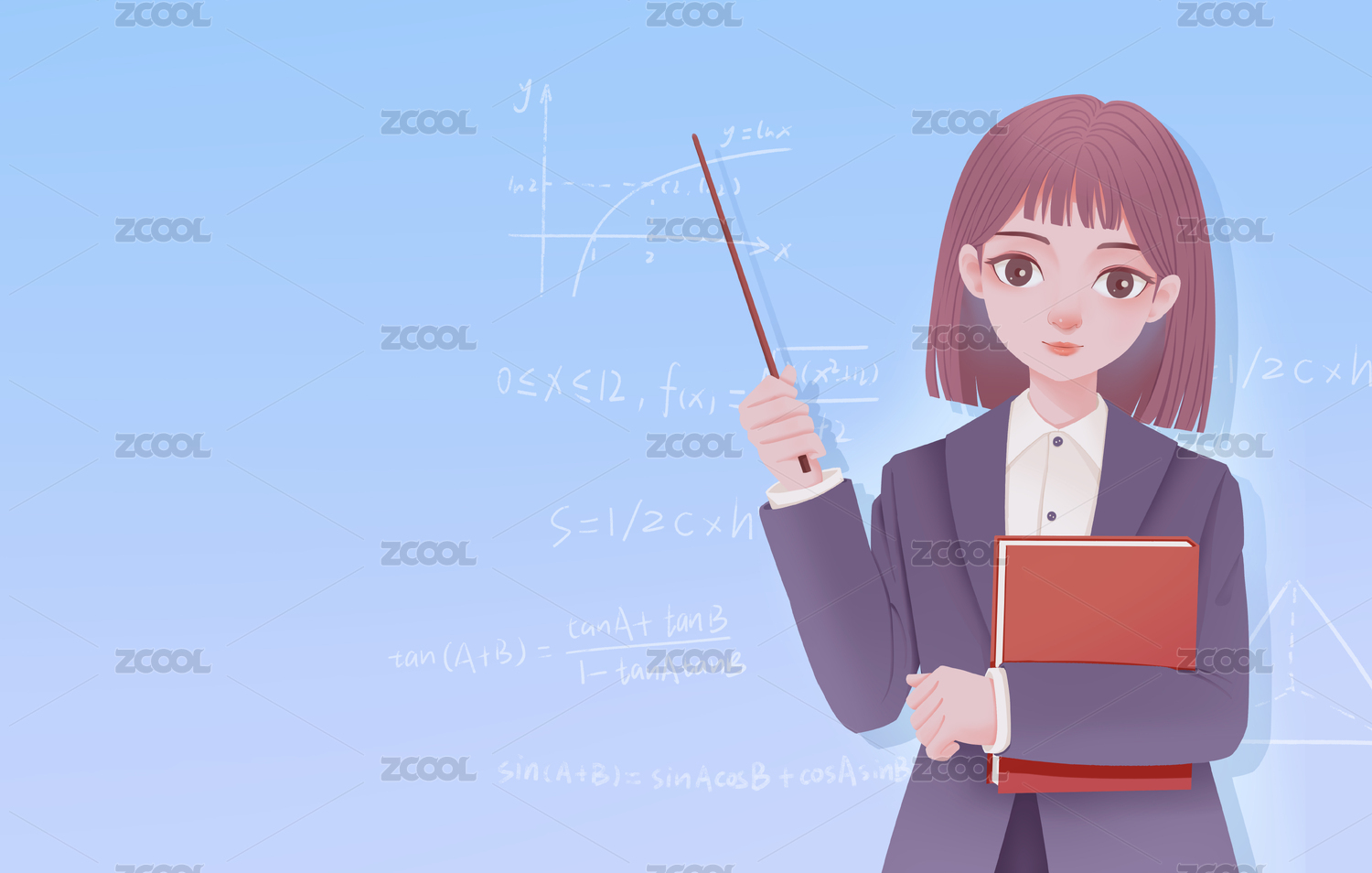 年轻的教师正在黑板上写数学题 课堂上讲课的老师插画