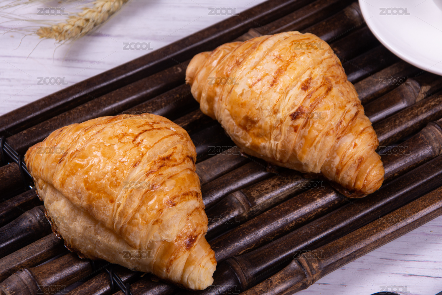 白色陶瓷盘子里面的牛角包