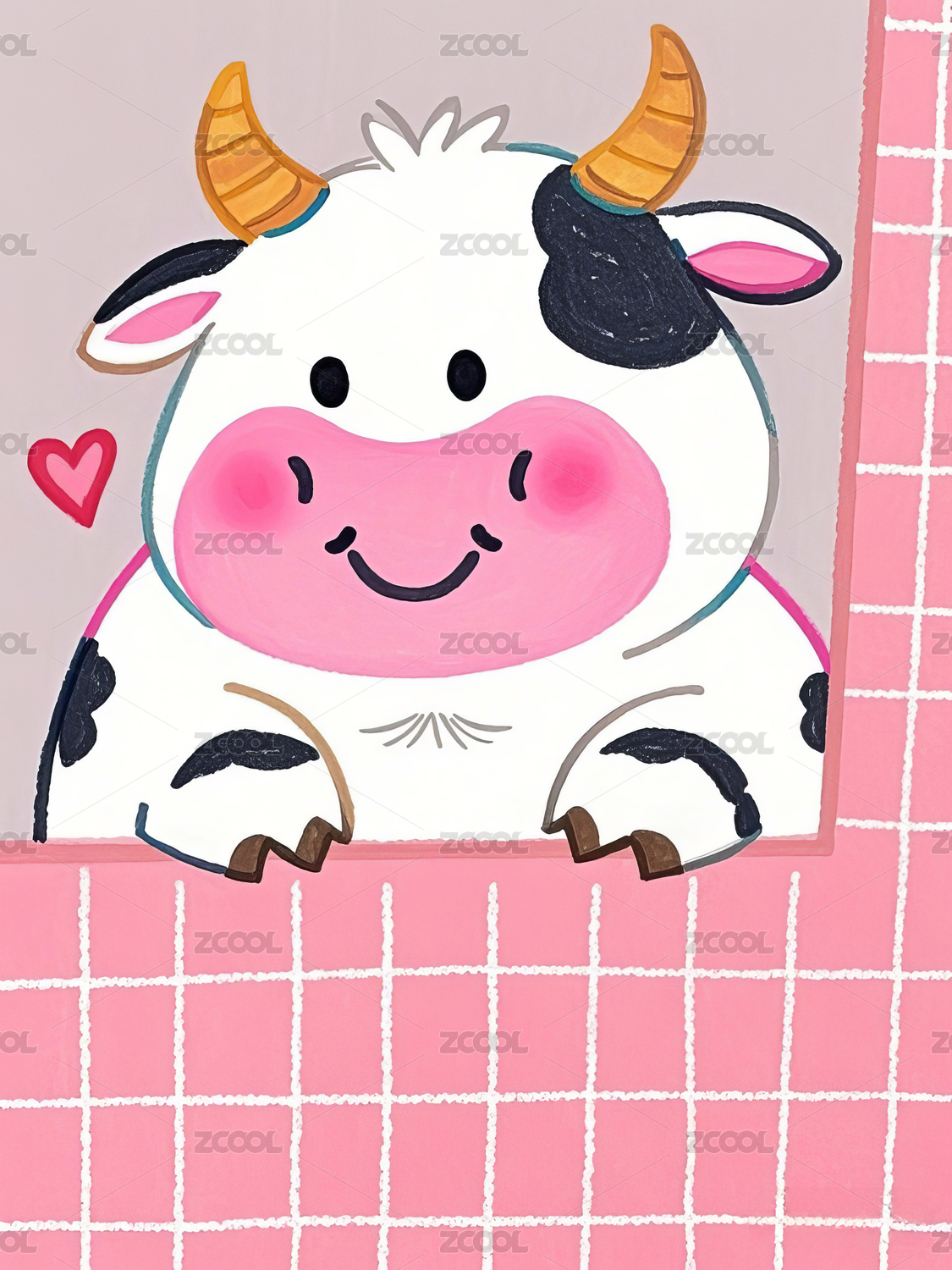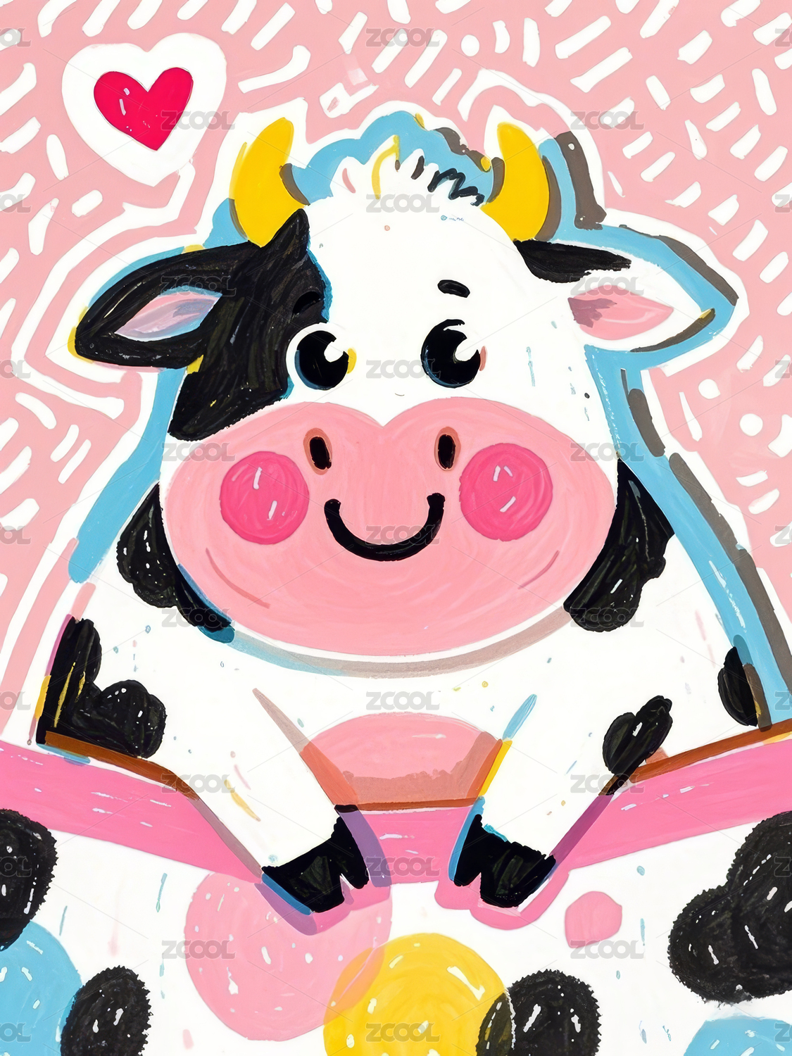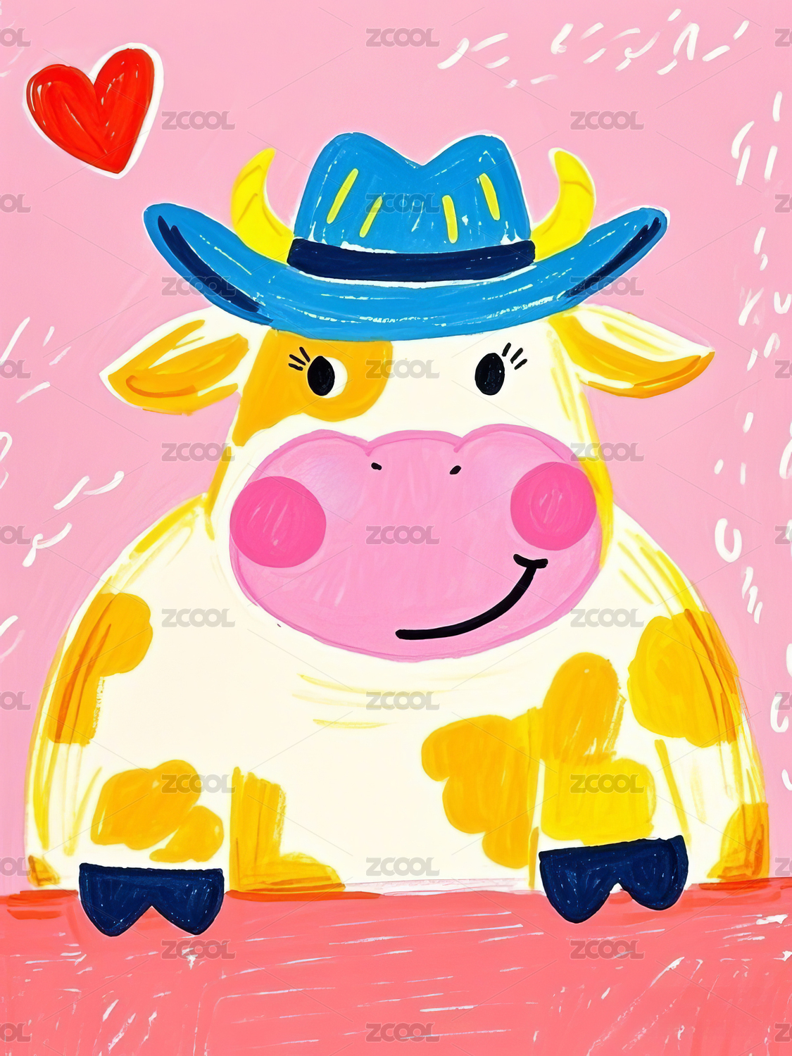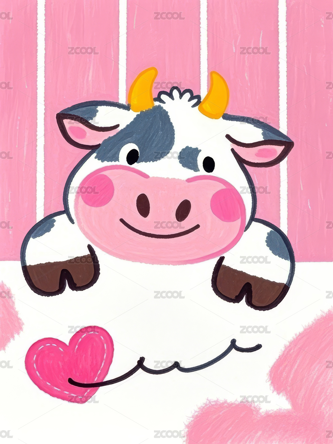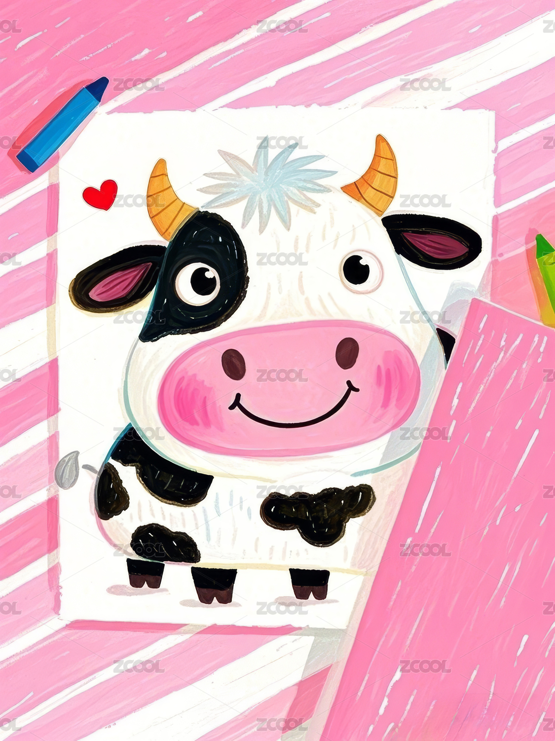 粉色,彩色,蜡笔,简笔画,生肖,可爱,卡通,牛年,牛,小牛