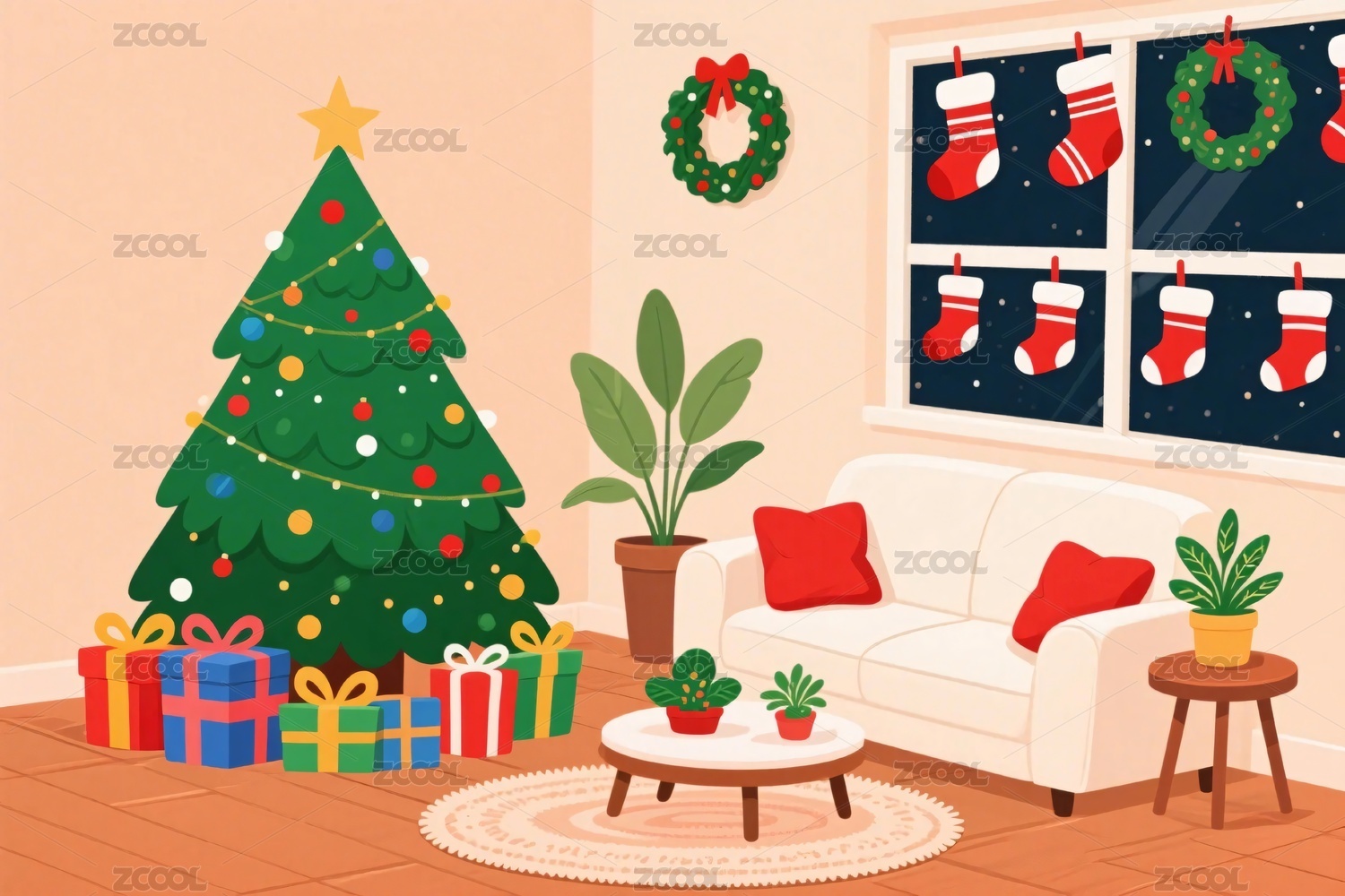 圣诞主题客厅插画