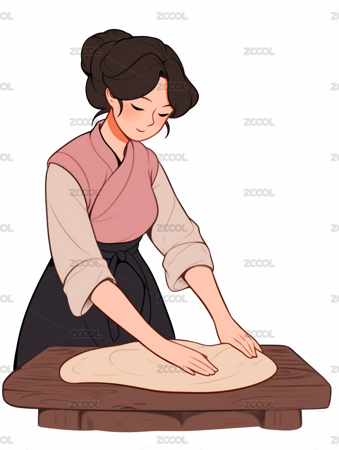 插画,绘画,面,面粉,面食,面团,人,一个人,扁平,传统
