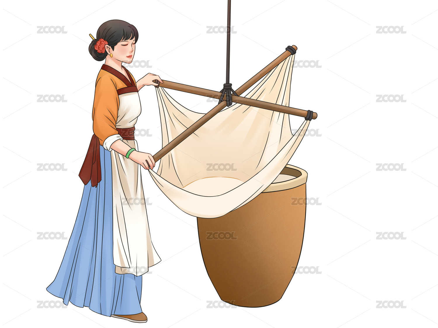 石磨豆浆人物插画素材