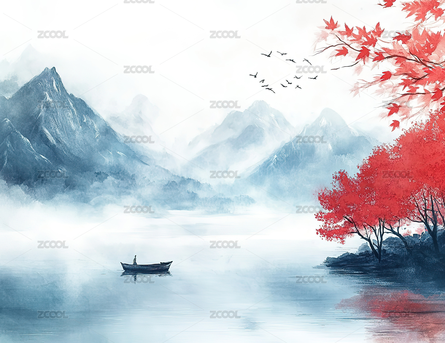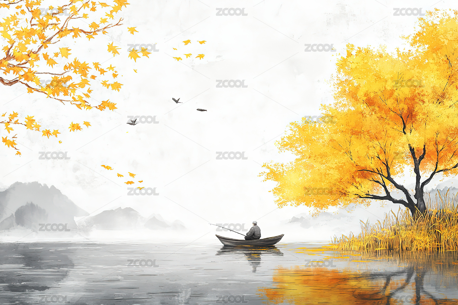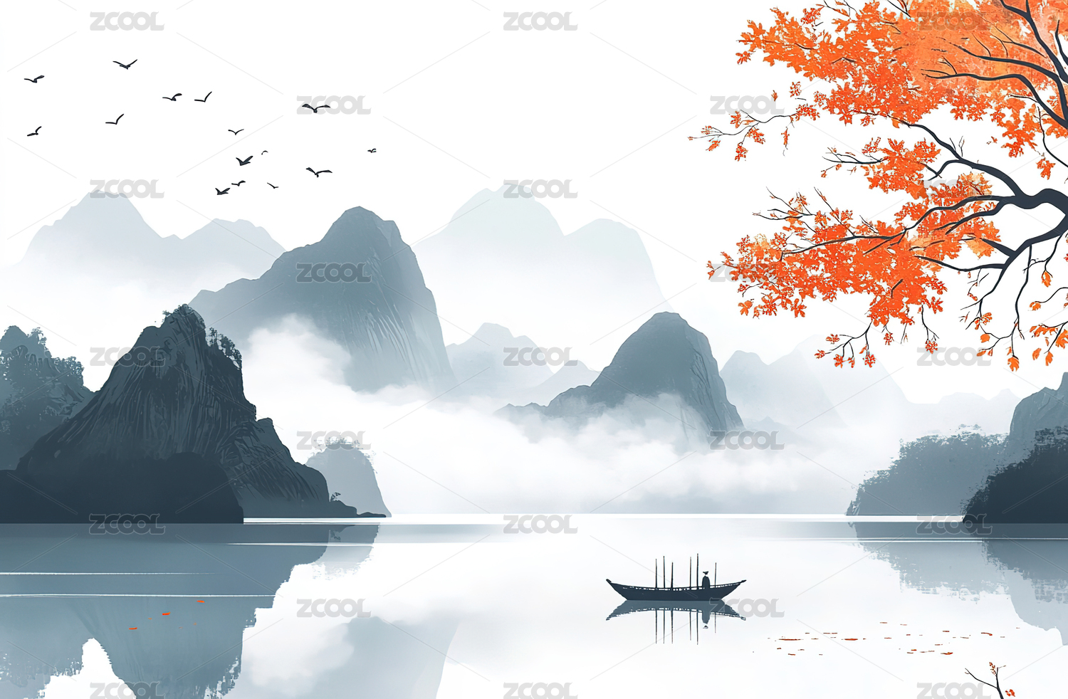 中国风,山水,意境,插画