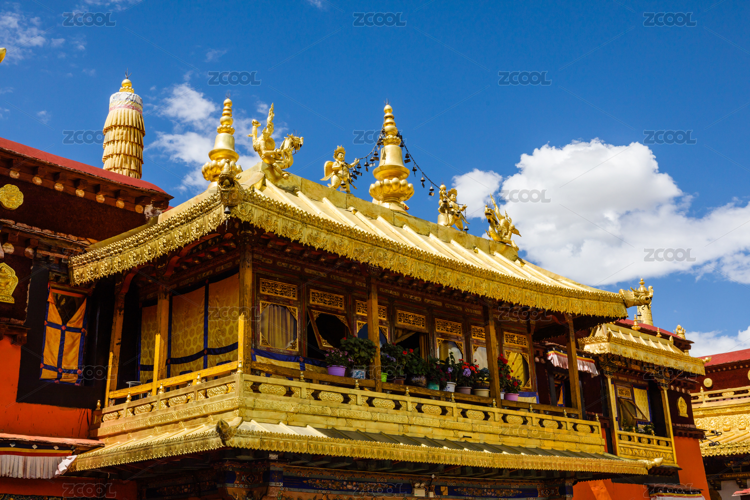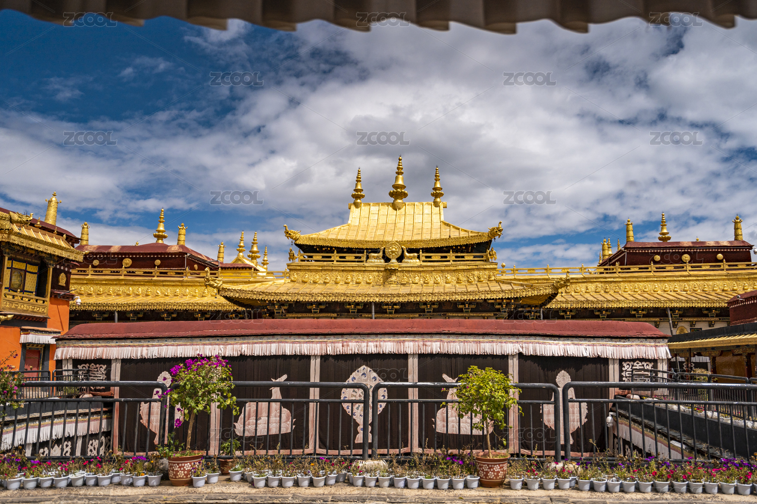 中国西藏自治区拉萨市大昭寺金碧辉煌的建筑群