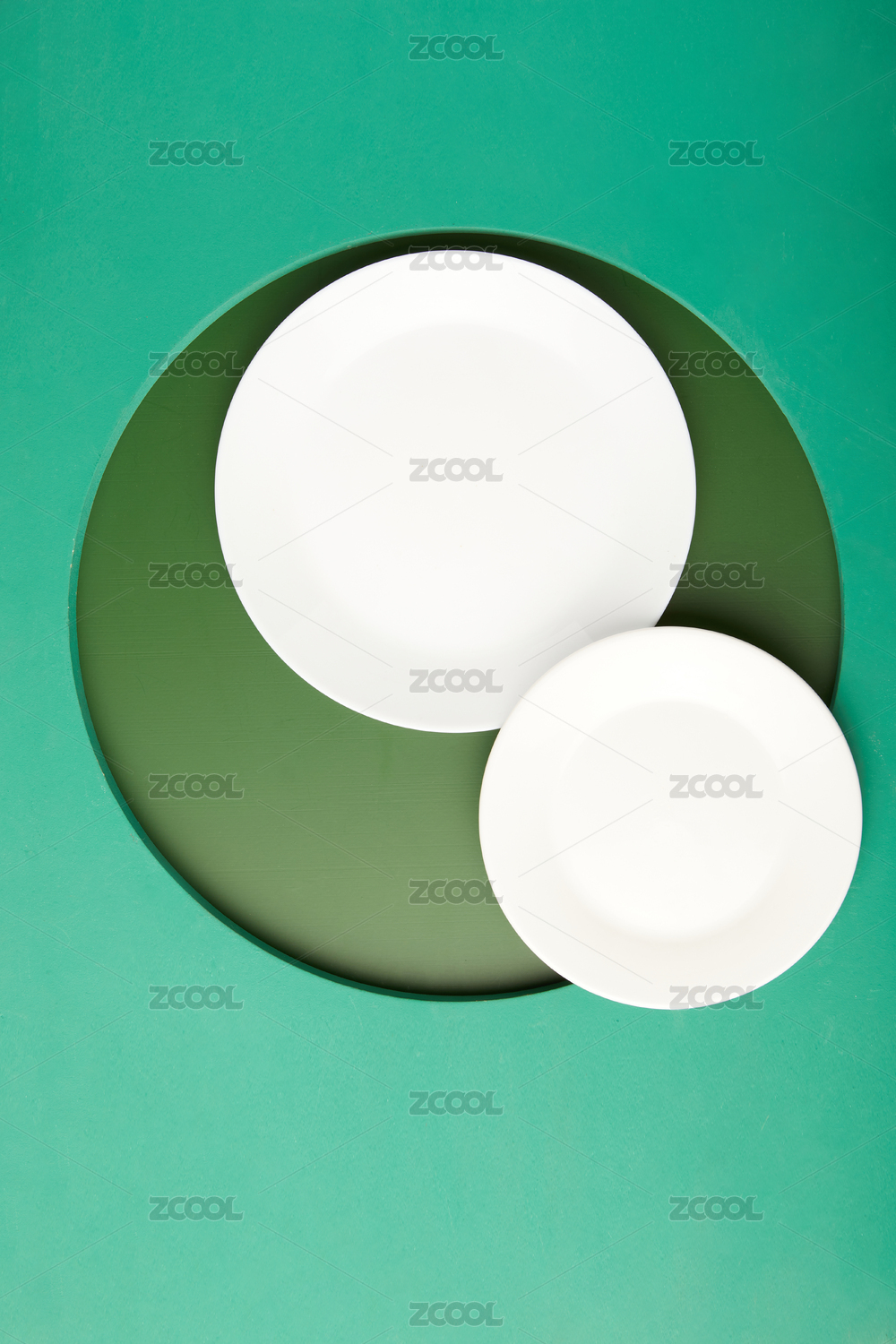 青底上白色餐盘里的中秋月饼及绿色藤蔓