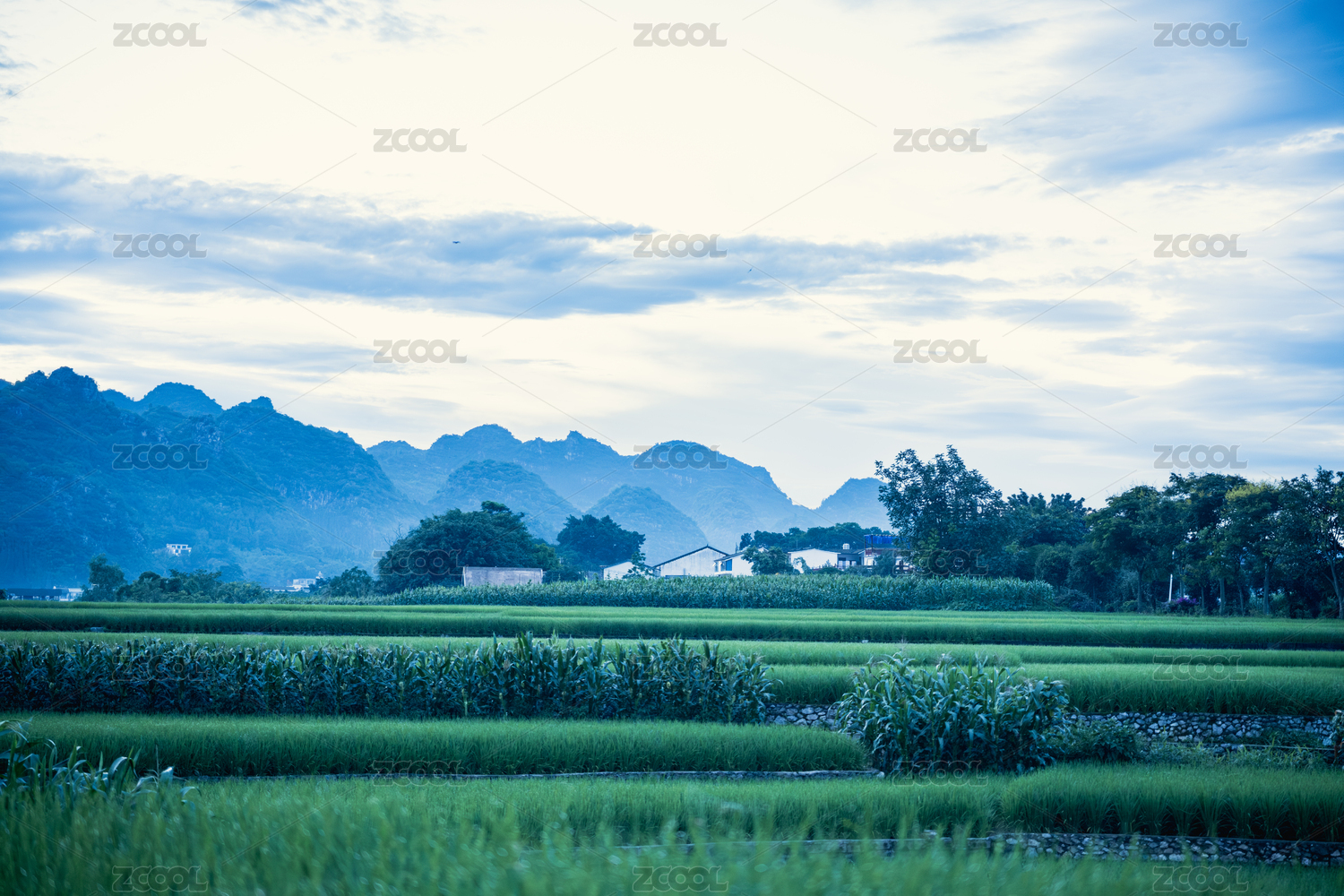 傍晚的兴义市万峰林田园风光