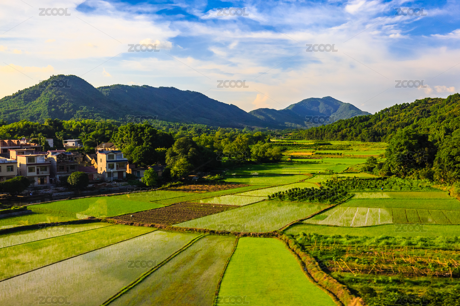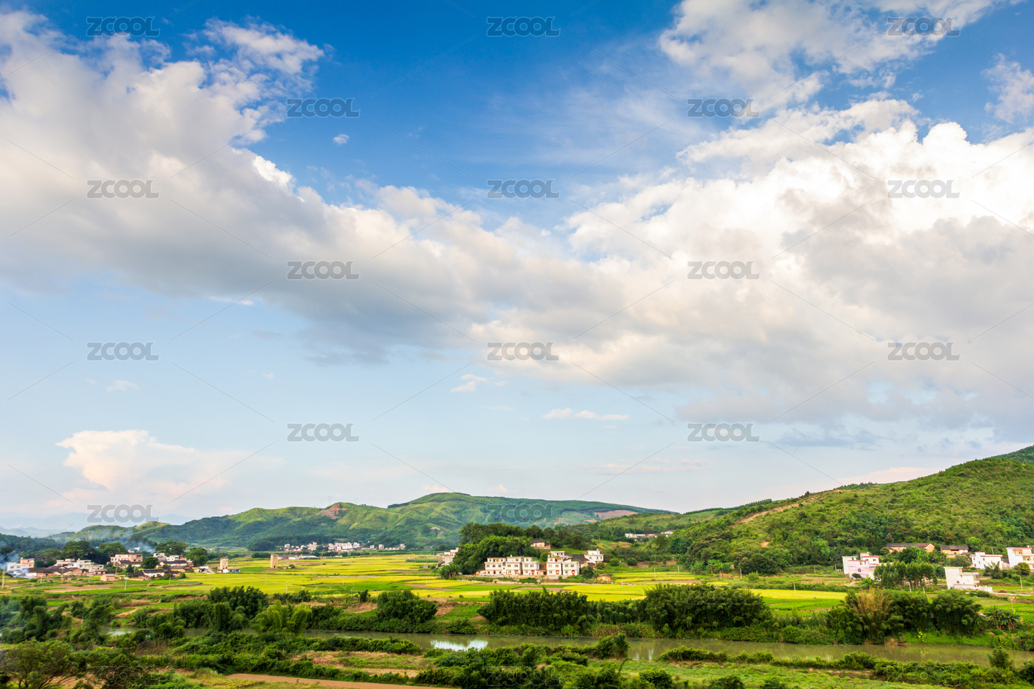 蓝天白云下的村庄