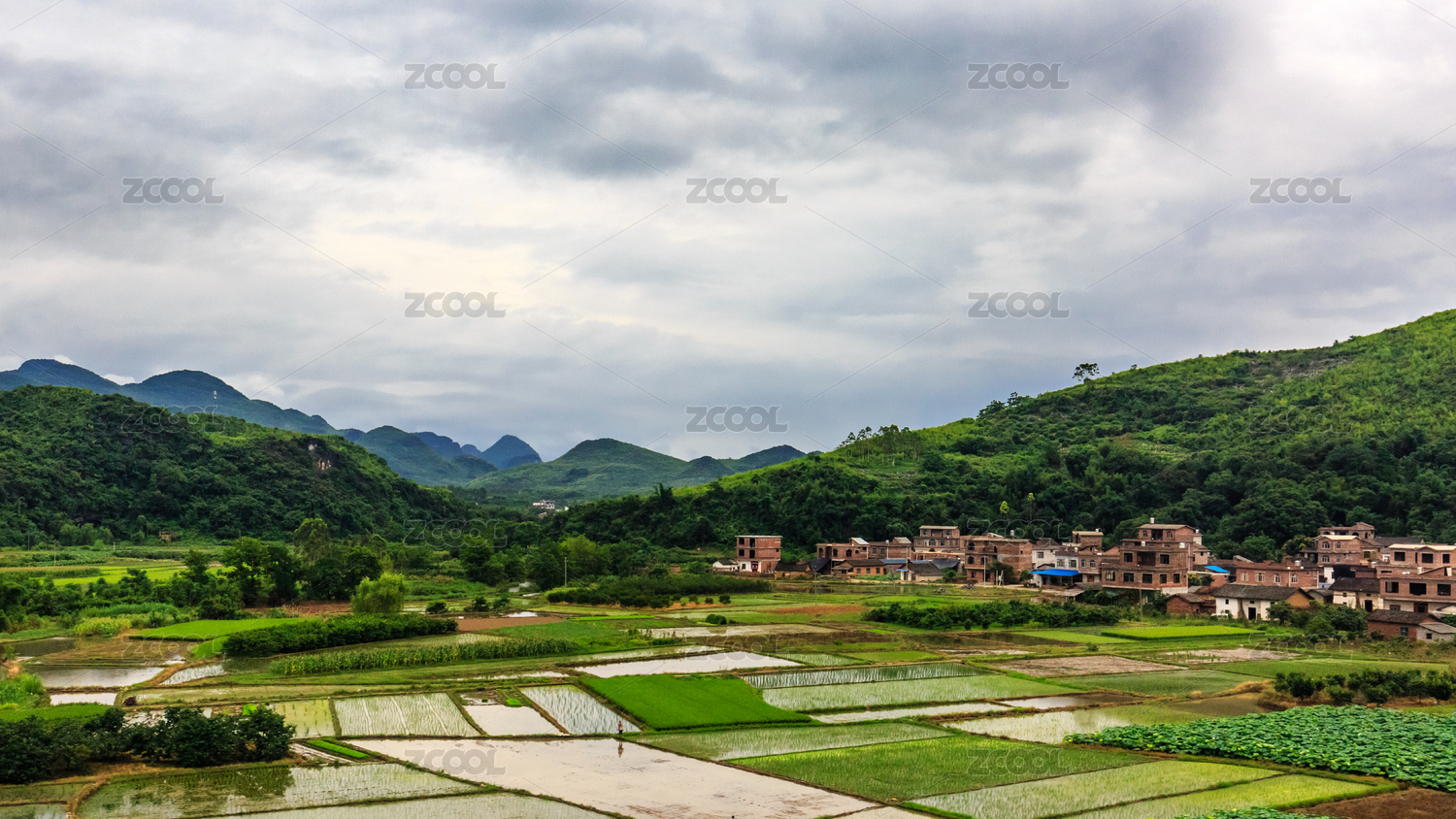 夏季桂林灵川县陶陂洲风光