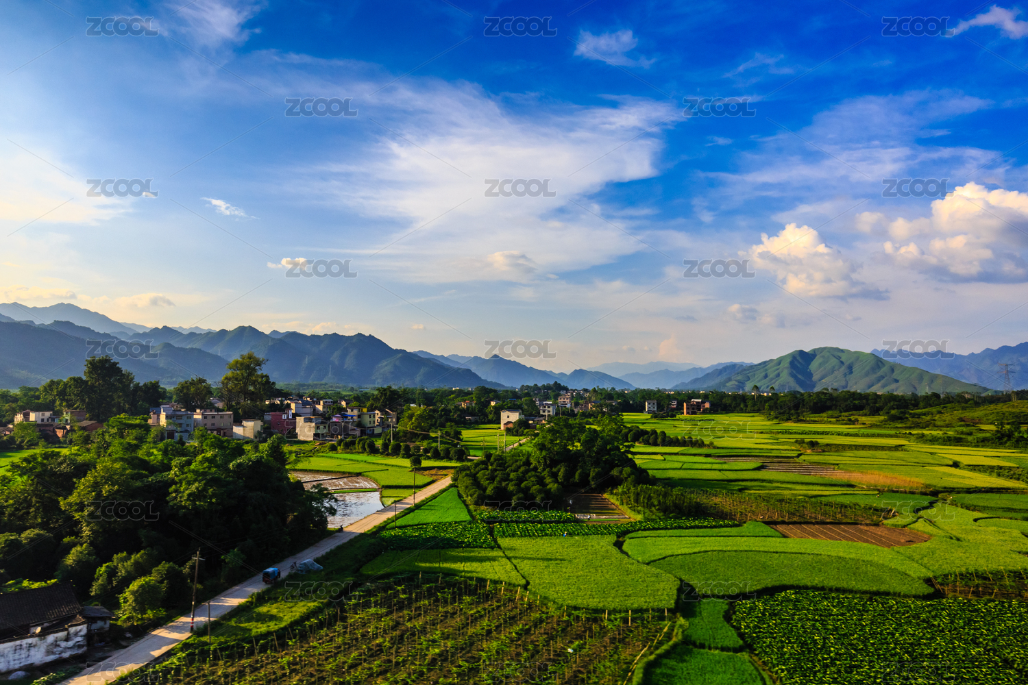 蓝天白云下的田园村庄