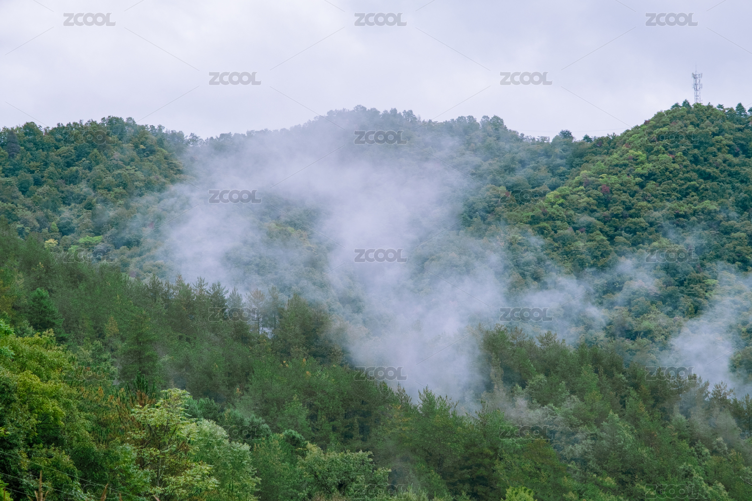 中国西藏林芝市波密县巴卡村飘在山间的云雾