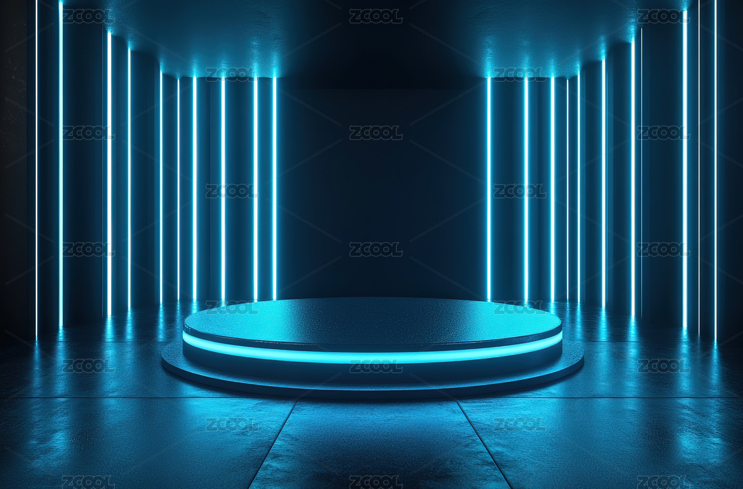 蓝色背景下桌子上的蓝色灯光特写镜头