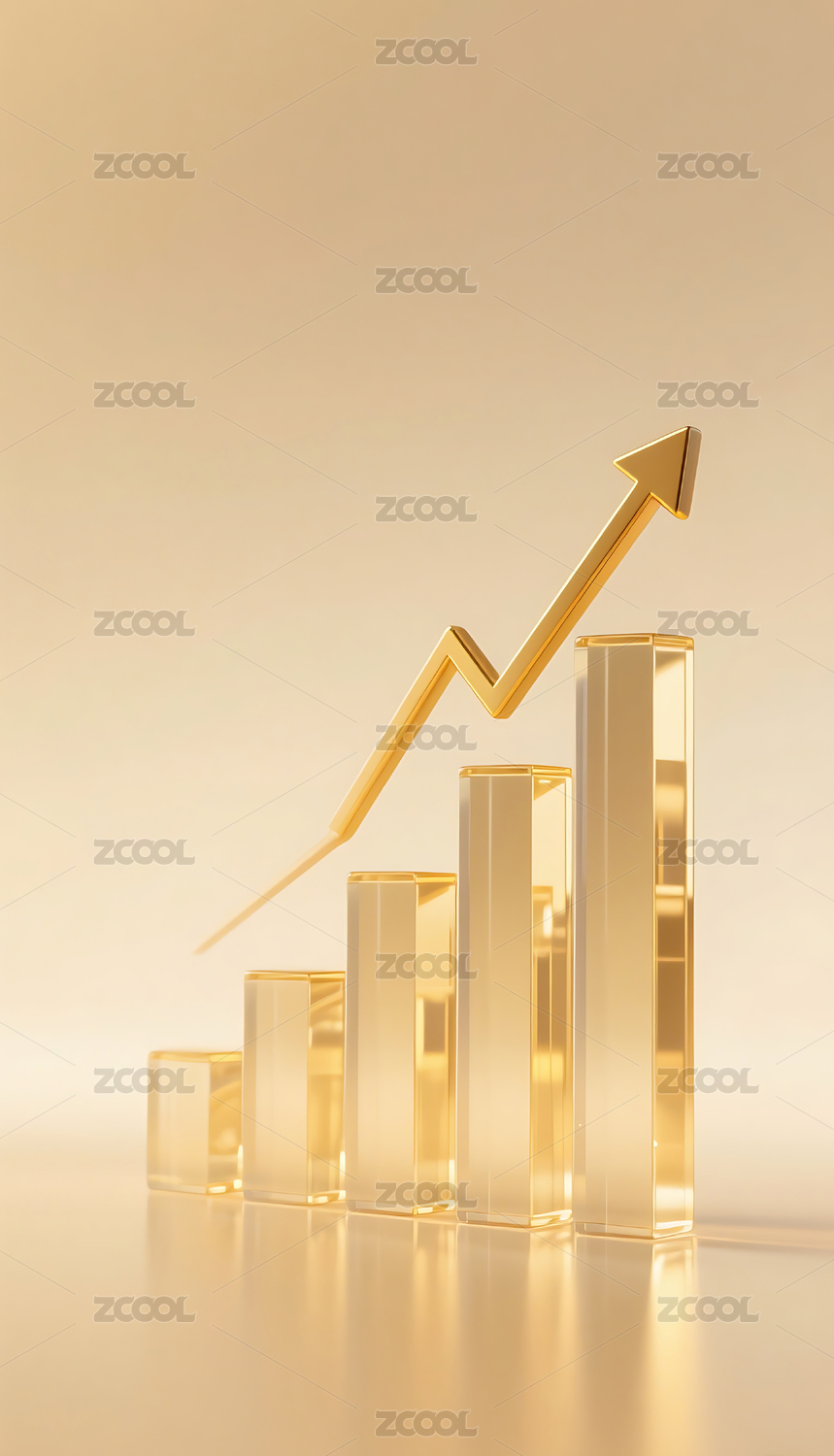 金色渐变玻璃质感金融柱状图增长箭头背景
