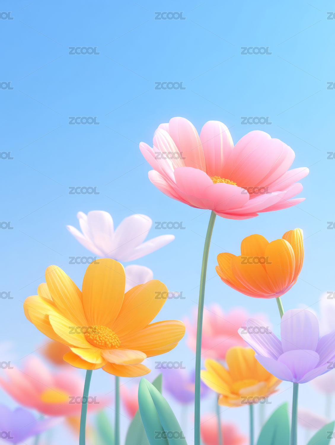 3D花朵天空清新简约背景