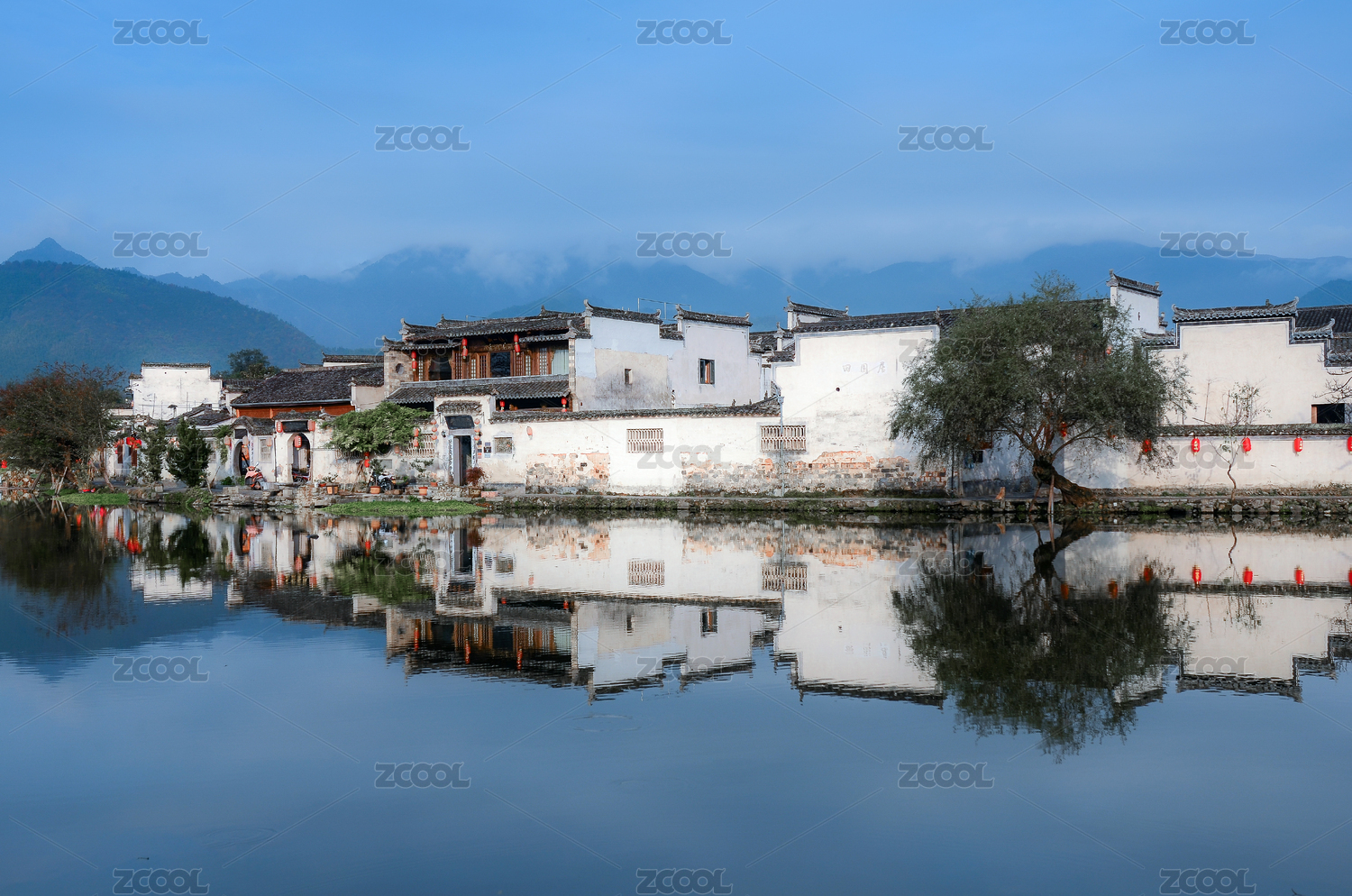 晨曦中徽派建筑风光,中国安徽省黄山市黟县宏村