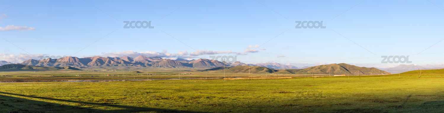 蓝天白云下的青海祁连山脉宽画幅风光