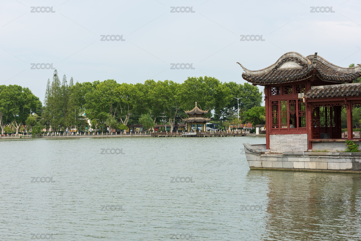 中国浙江杭州西湖,码头停泊的游船与画舫