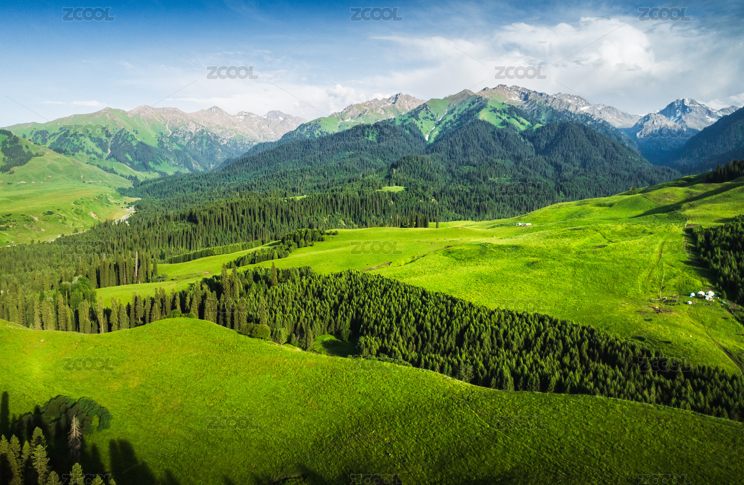 中国新疆伊犁那拉提草原云杉森林自然风光