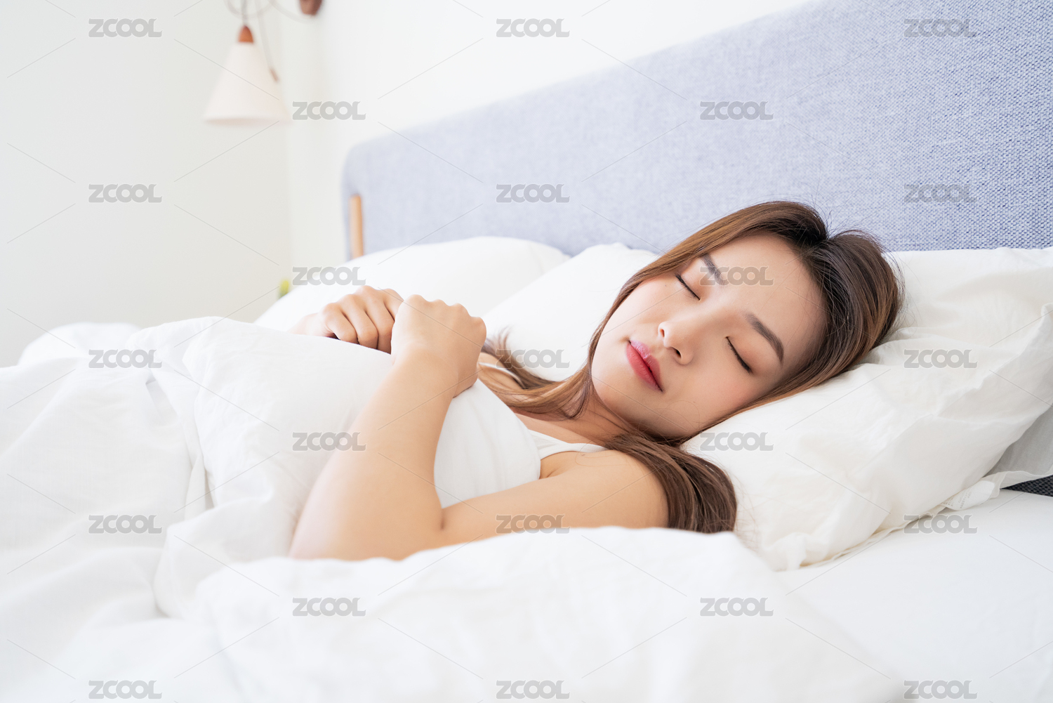 年轻漂亮女性躺在床上睡觉