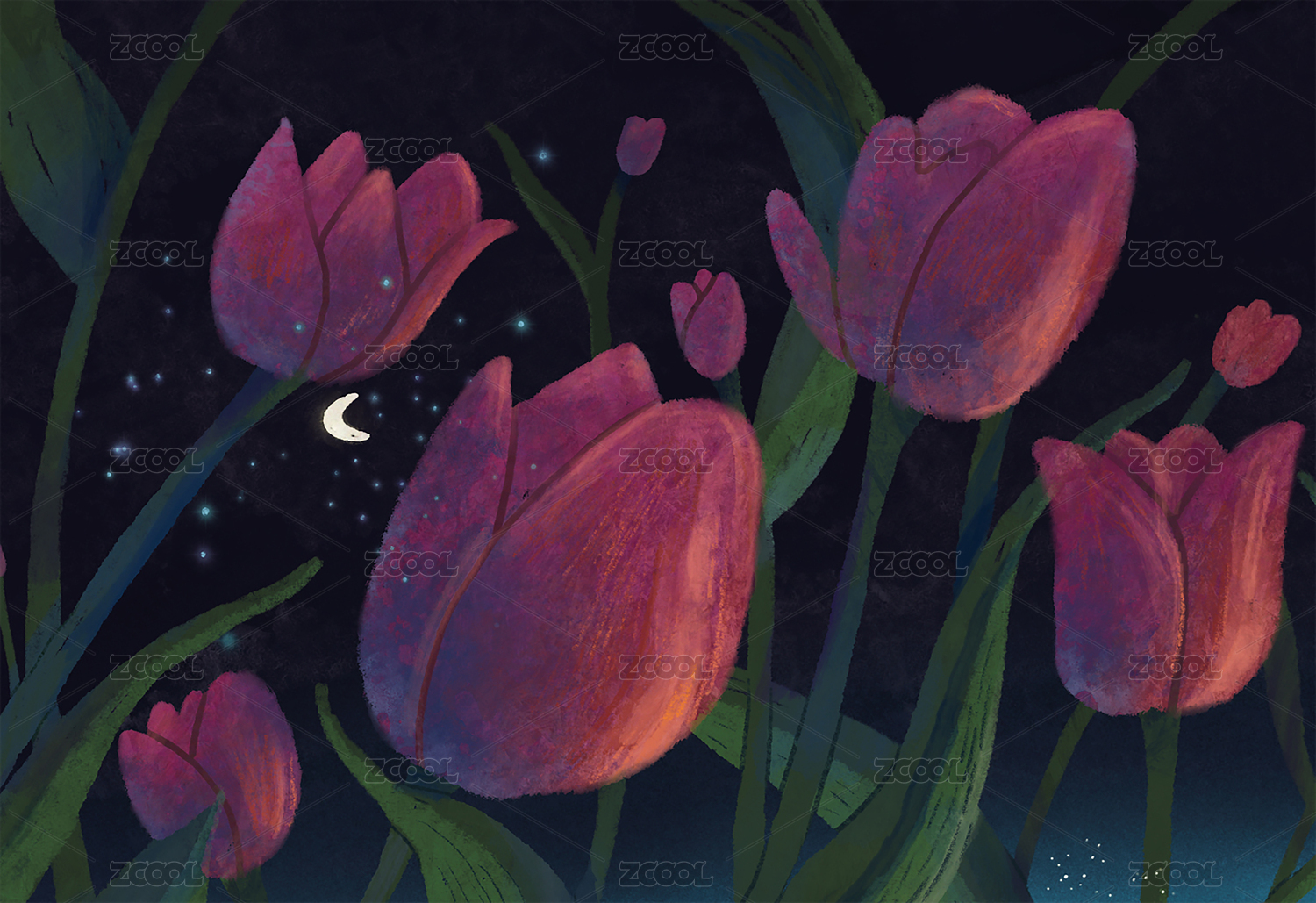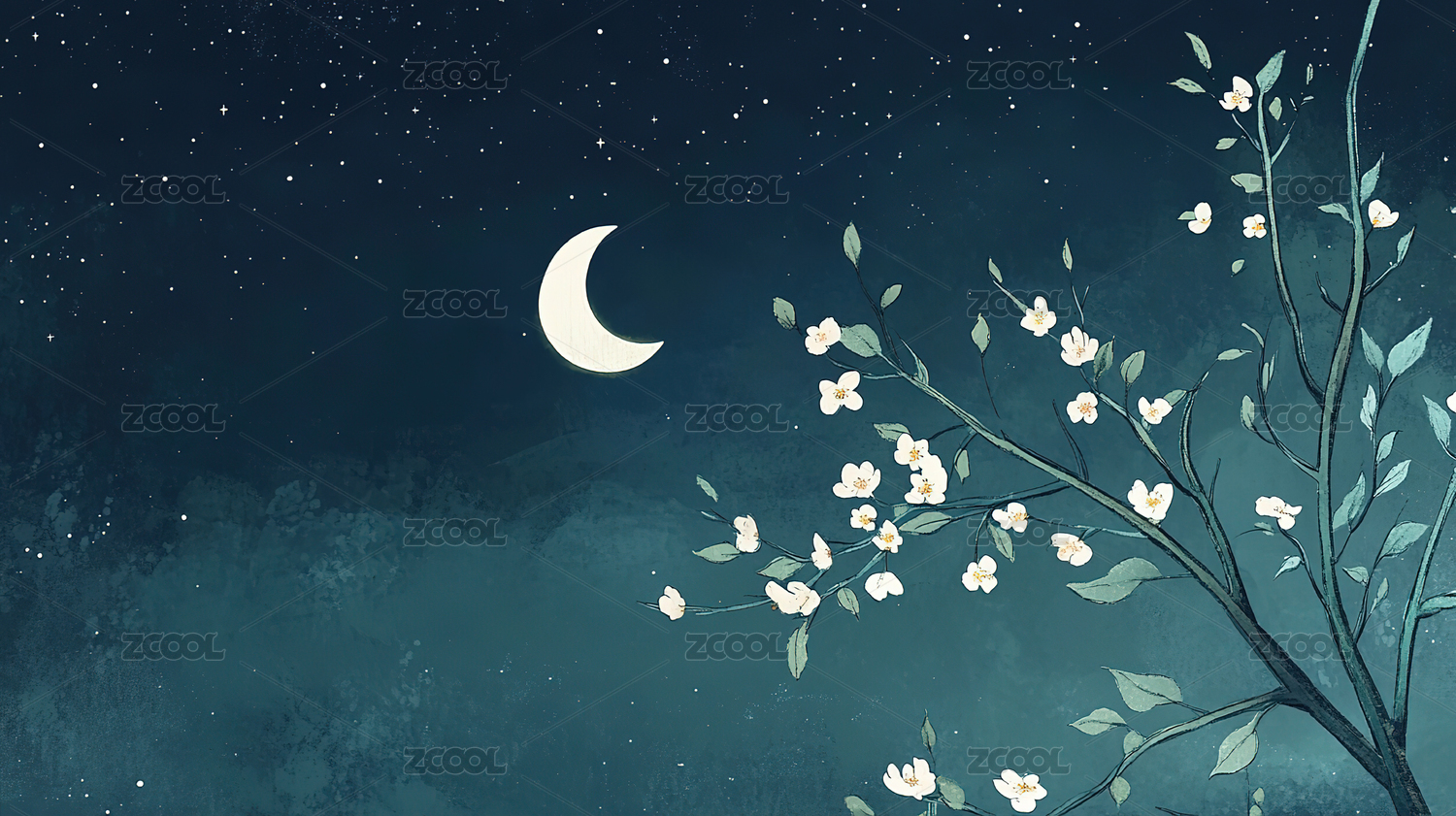 妖精,精灵,采蜜,月亮,星星,夜晚,空中,花