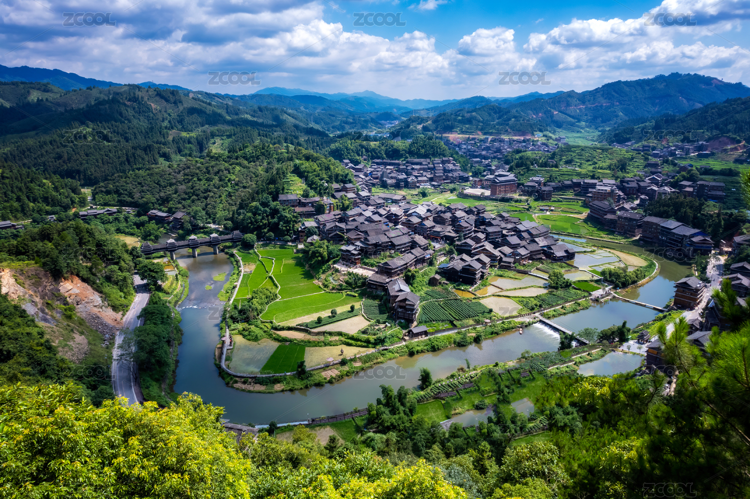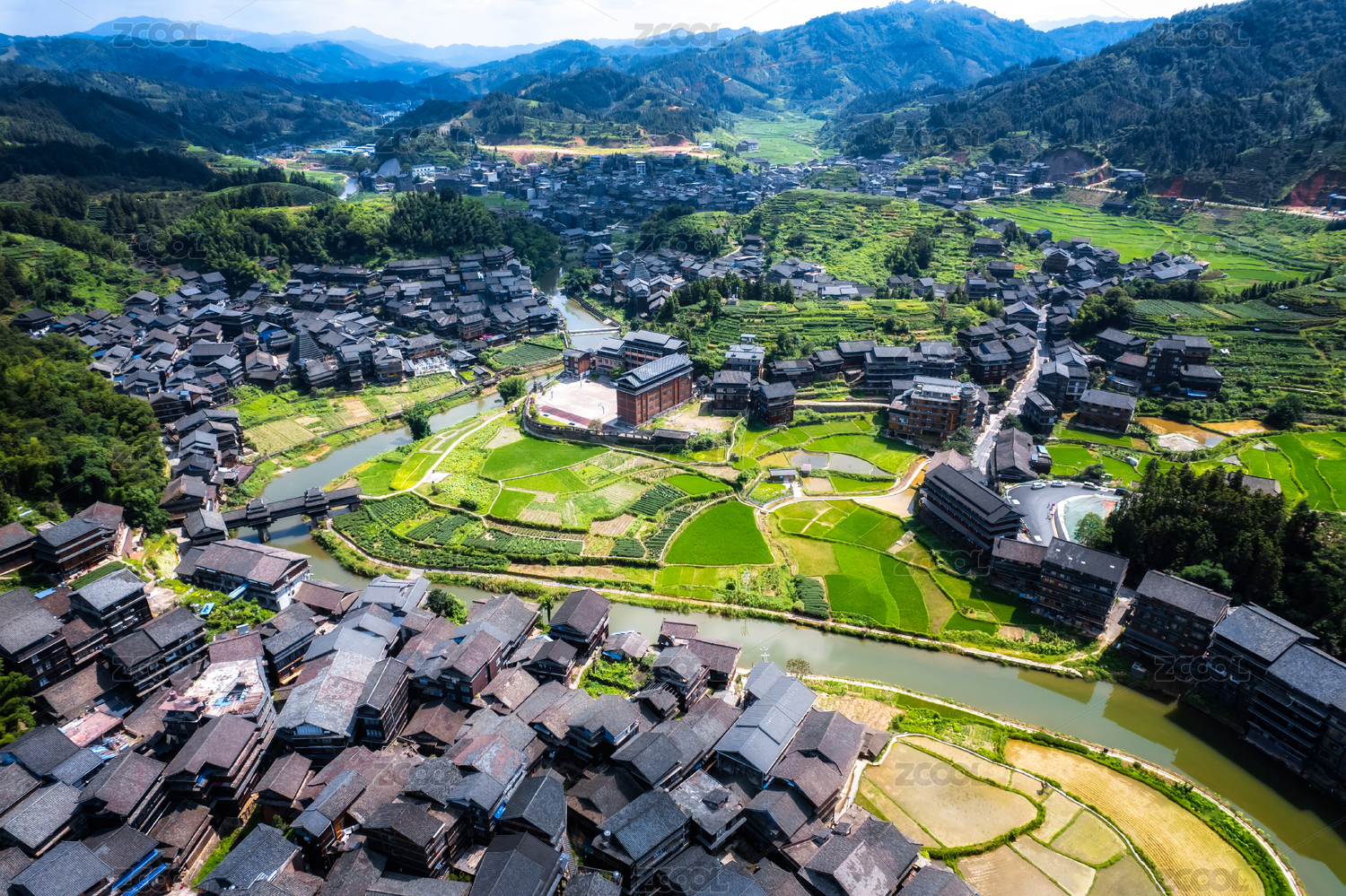 中国贵州黔东南州黎平县肇兴侗寨航拍